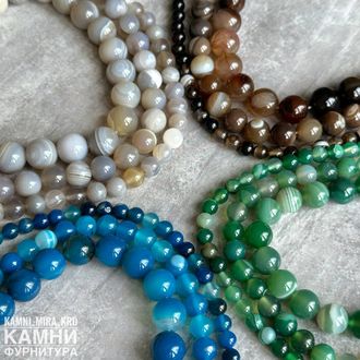Тонированные агаты, шары с полосками и рисунками