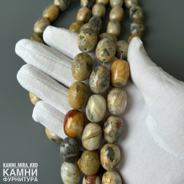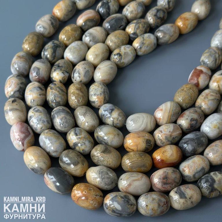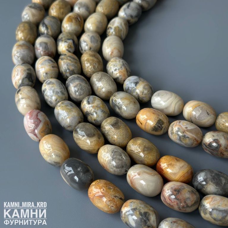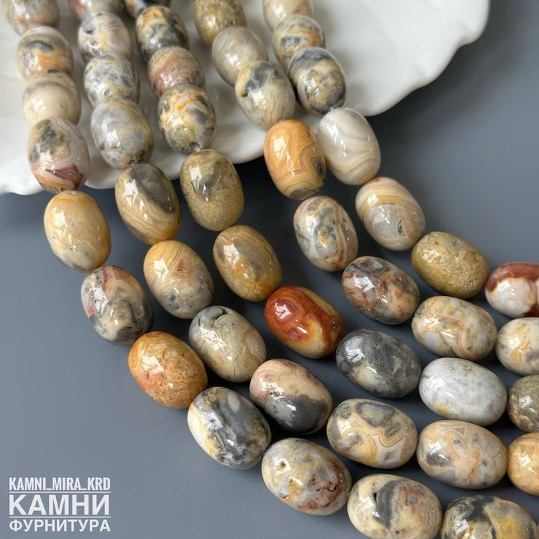 Агат кружевной "Переливт" крупная олива 20-20,7 мм с раковинками, трещинками (код 4112)