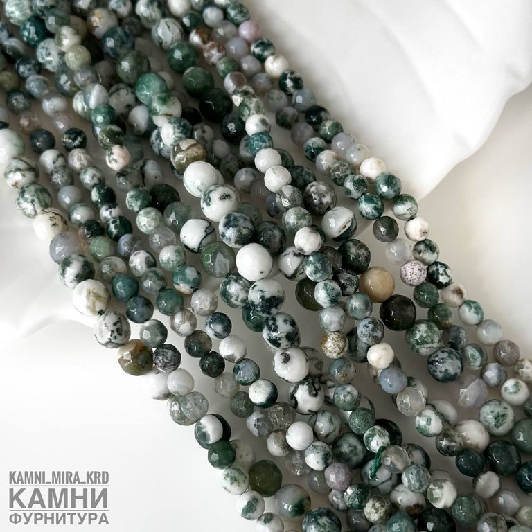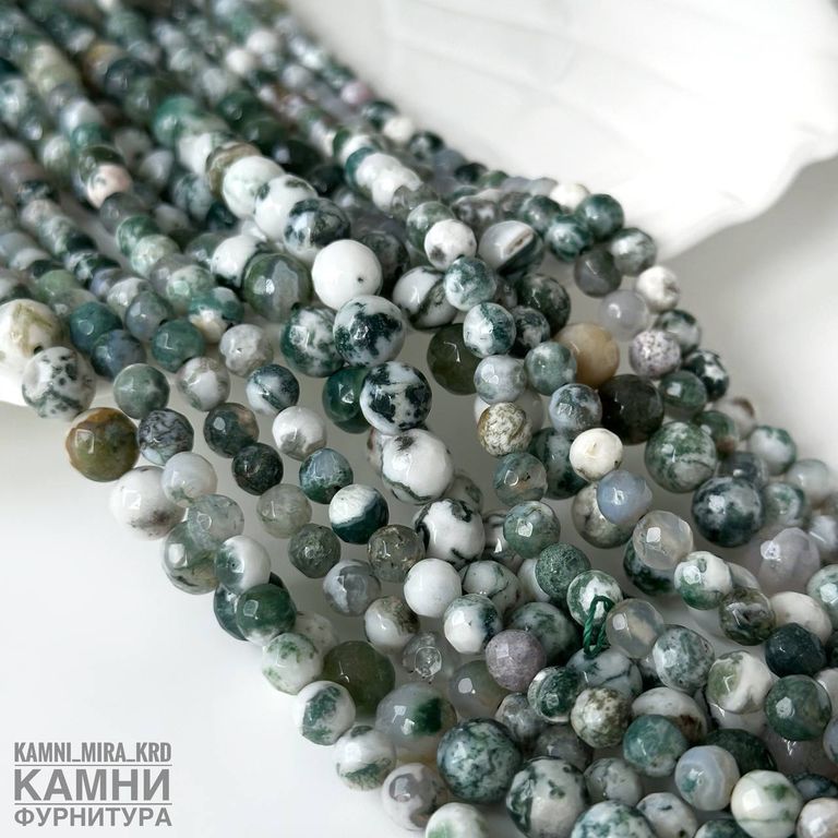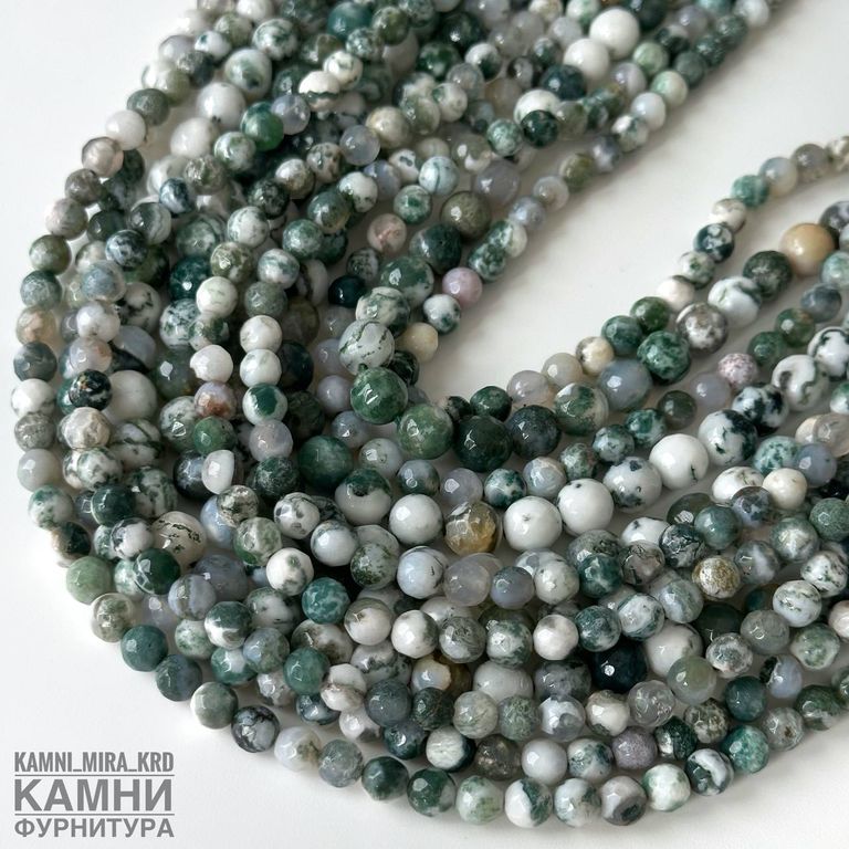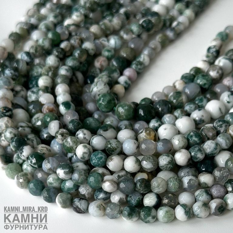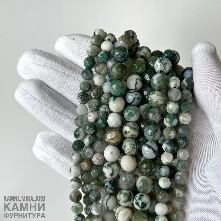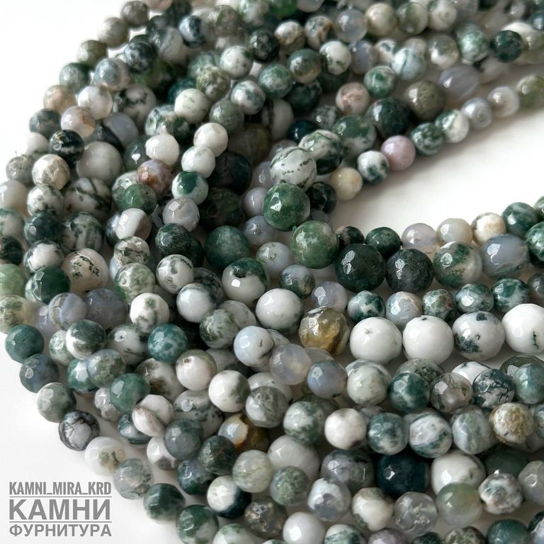 Агат моховый огранка, шары 6-6,3/7,8-8,3 мм