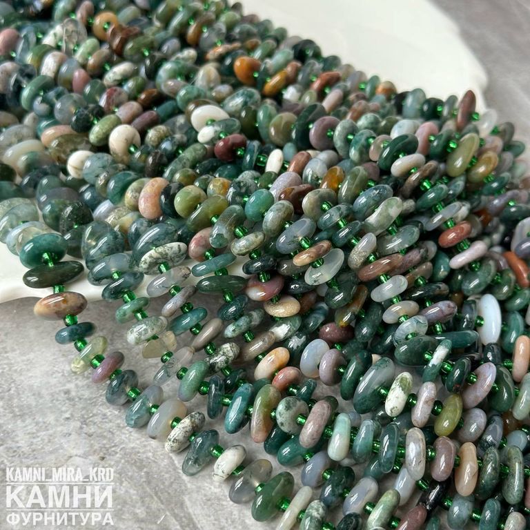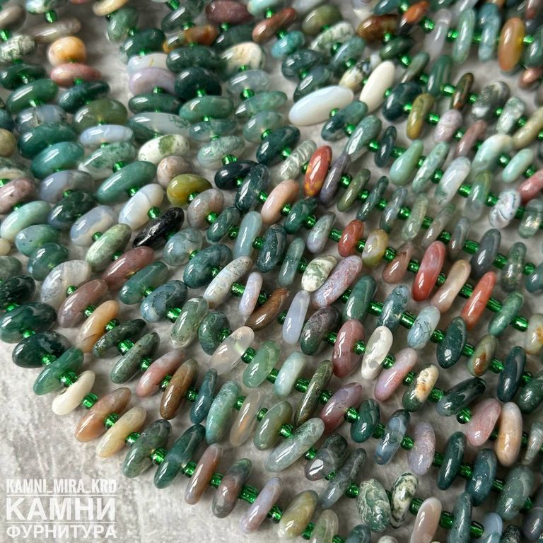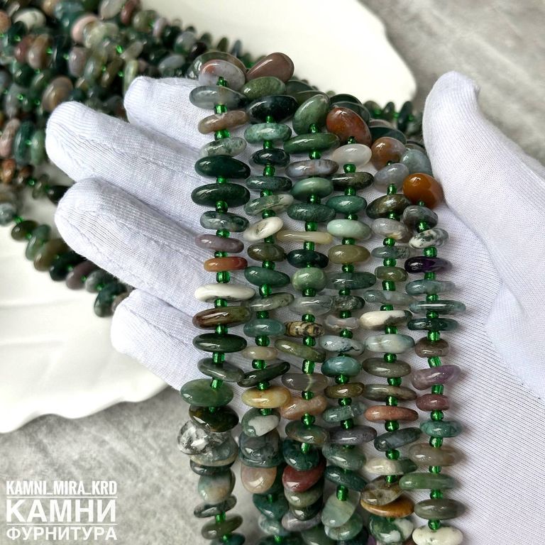 "Индийский агат" халцедон с яшмоидной породой чипсы 11-14х3-5 мм (код 1057)