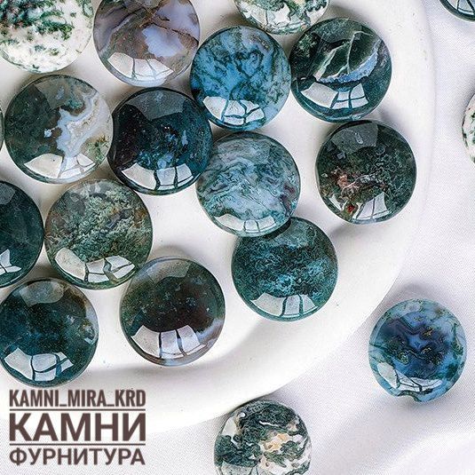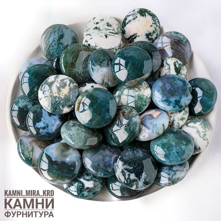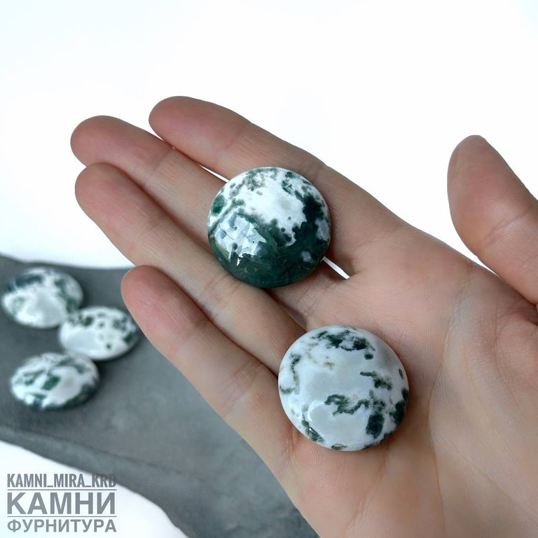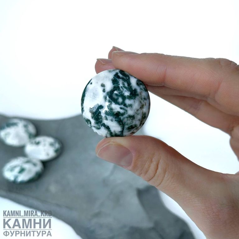 «Агат моховый» халцедон с включениями окуглая крупная галтовка 30 мм (код 3156)