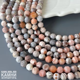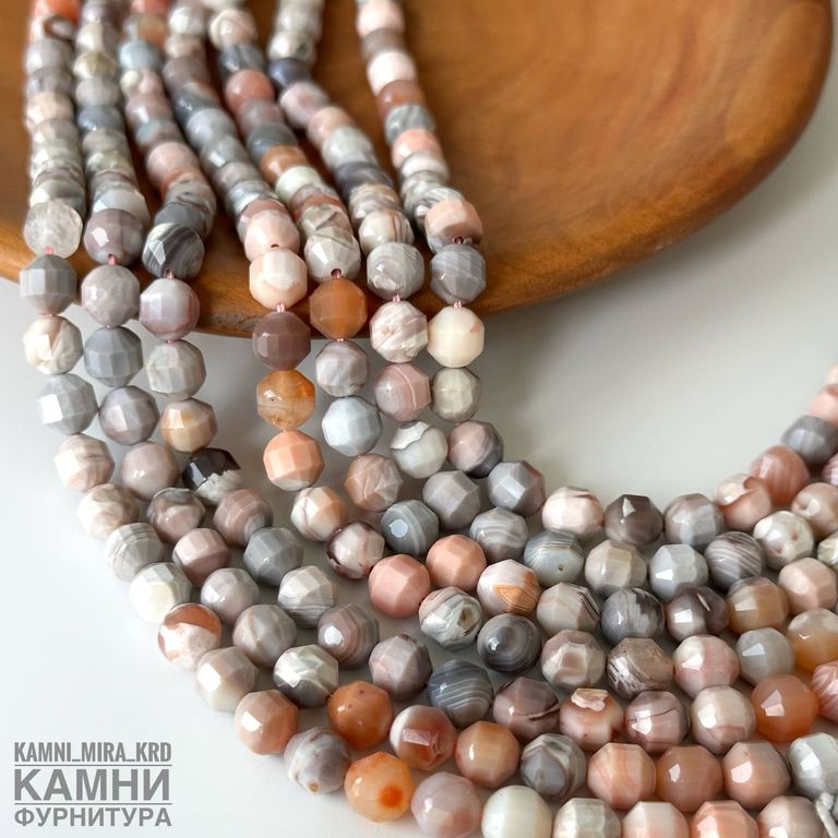 "Розовый агат Ботсвана" агат бежево-розовый с серыми и оранжевыми оттенками, фонарик 6,6-7,2 мм (код 1866)
