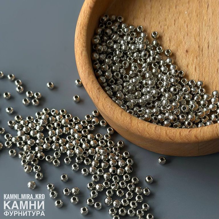 Круглые серебрянные акриловые бусины 4 мм (код 4303)