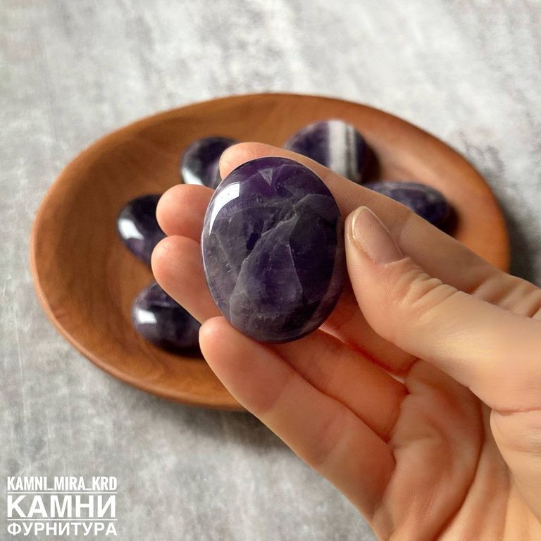 Аметист крупная овальная галтовка 35х45х16 мм (код 1536)