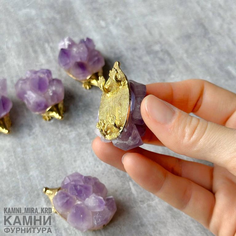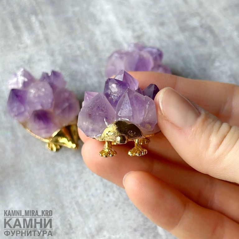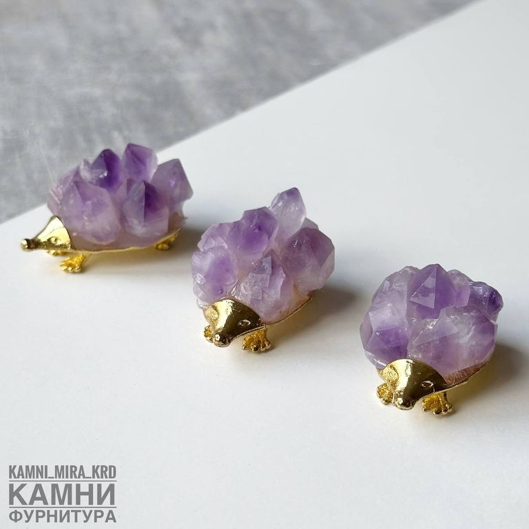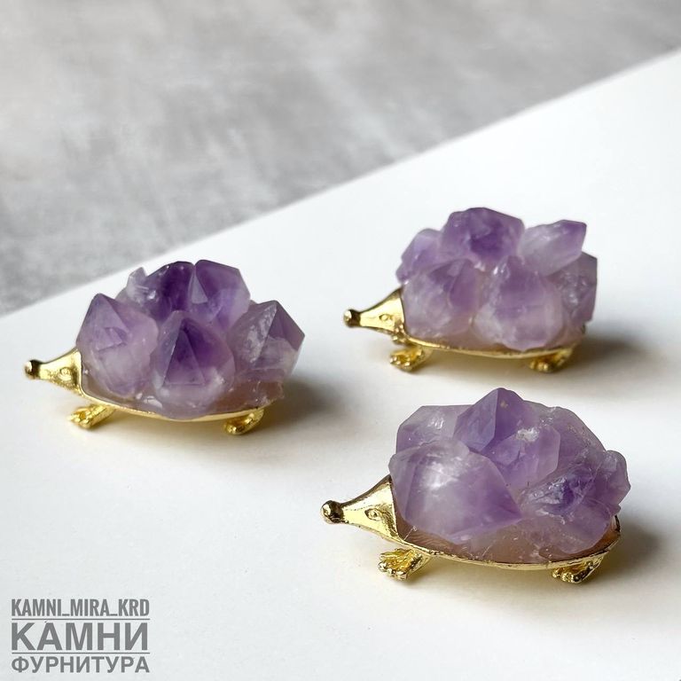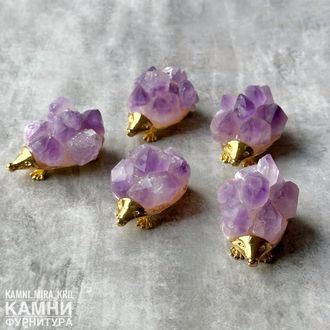 "Ёжик аметистовый" сувенир с аметистом с белым налётом 20х33 мм (код 2449)