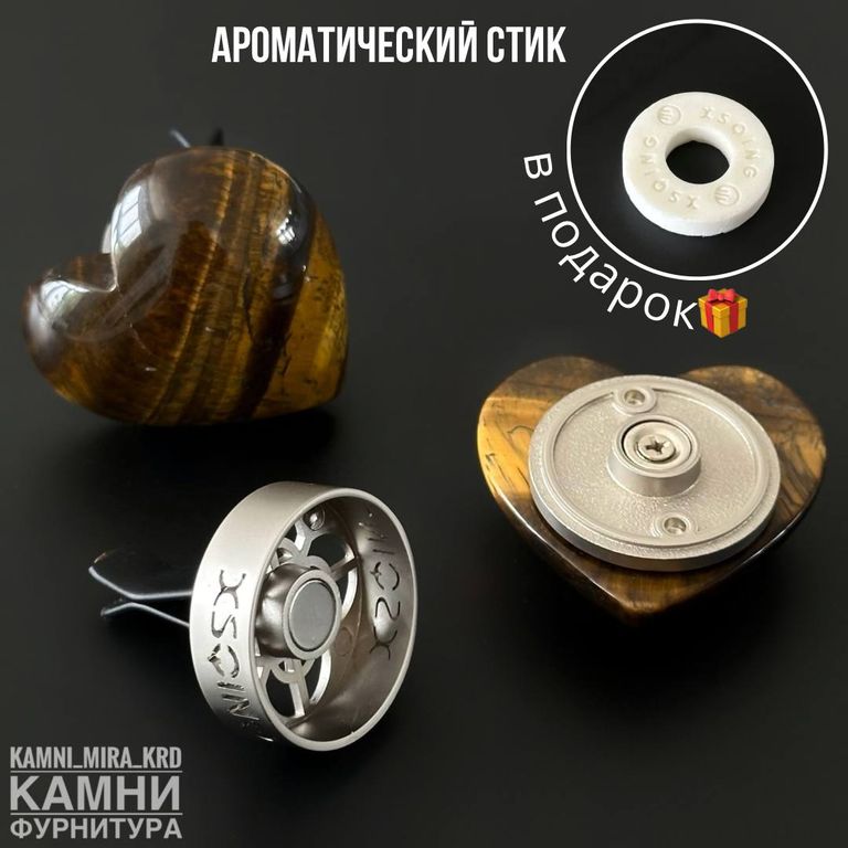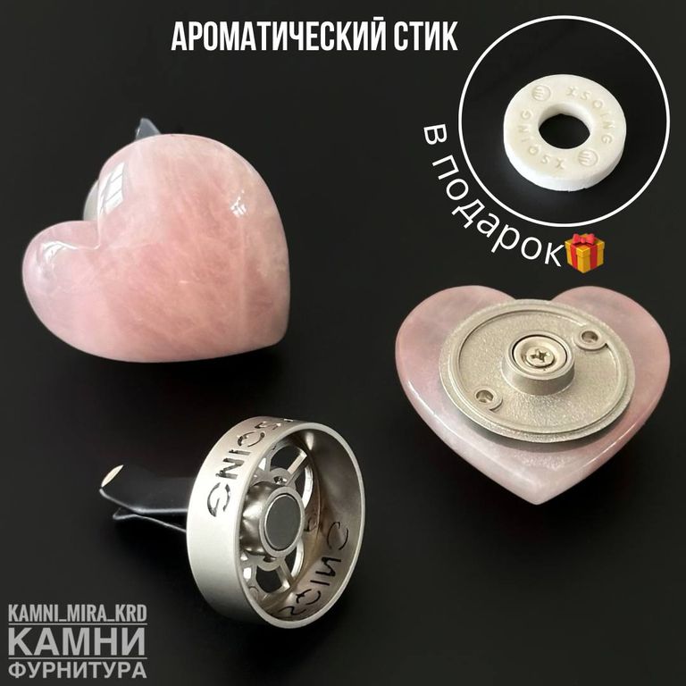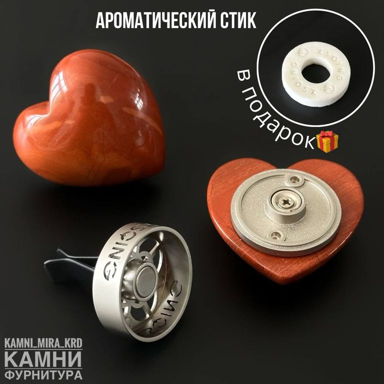Аромадиффузор "Сердце" 42х42х14 мм из натурального камня, В ПОДАРОК ароматический стик для авто