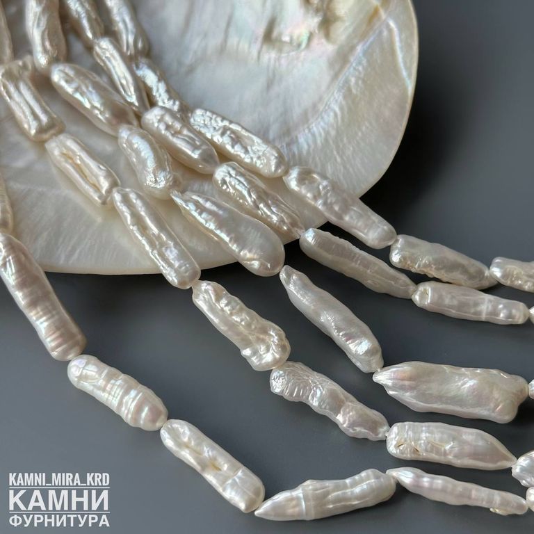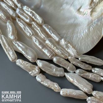 Жемчуг барочный белый палочки фри-форм 4,8-12,8x7,5-21,7 мм (код 4176)