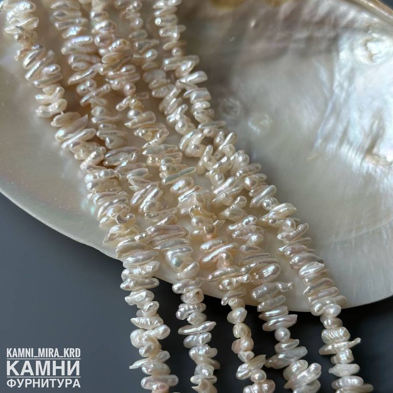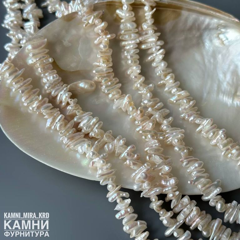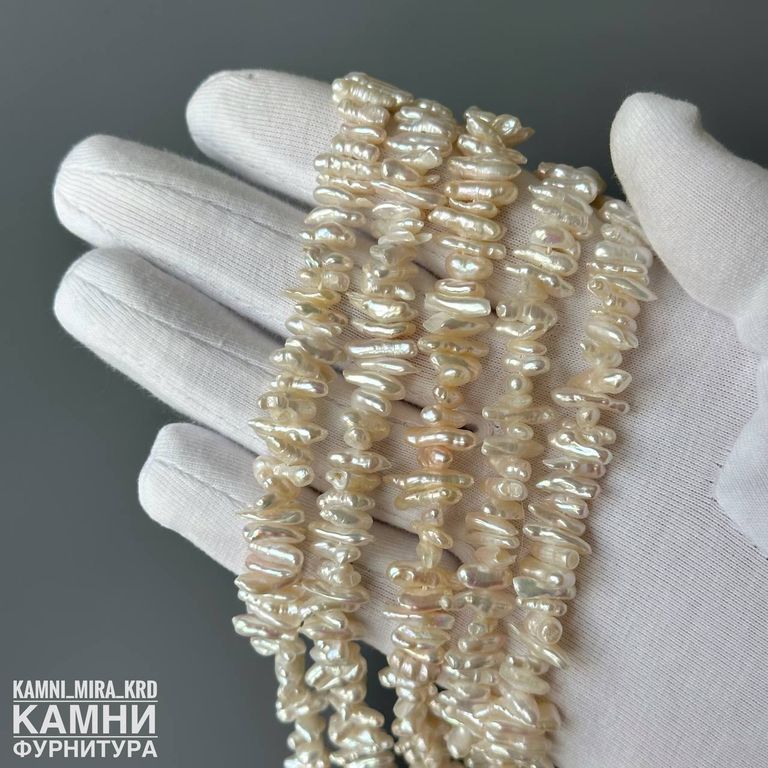 Жемчуг барочный белый палочки мелкие фри-форм 2,3-7,4х3,1-14 мм дырочка в центре (код 4177)