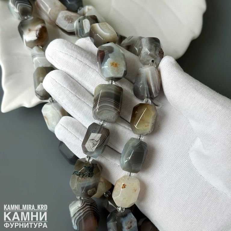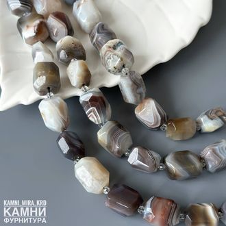 Агат Ботсвана крупные прямоугольники в грубой фри-форм огранке 17-22х14-17,5 мм (код 284)