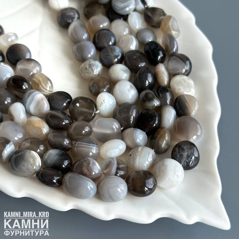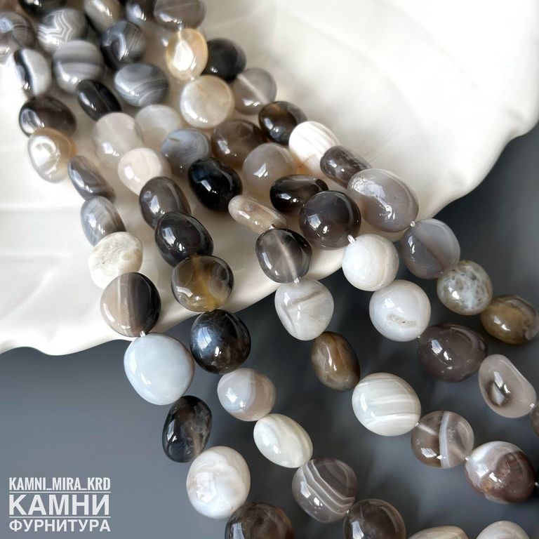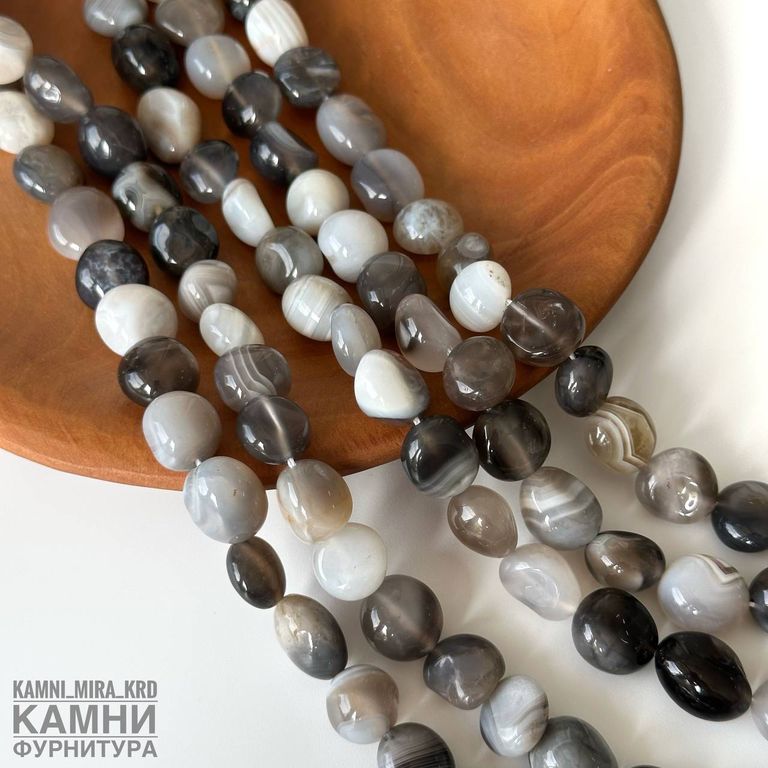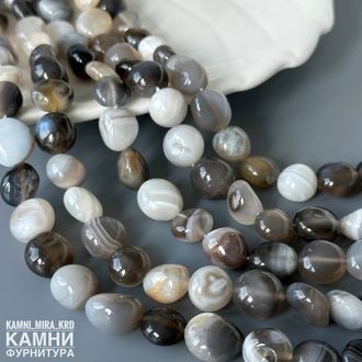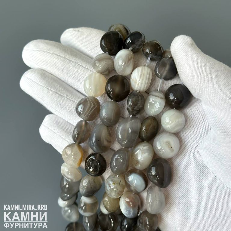 Агат Ботсвана серо-белый крупная округлая галтовка 12-16,7 мм (код 599)