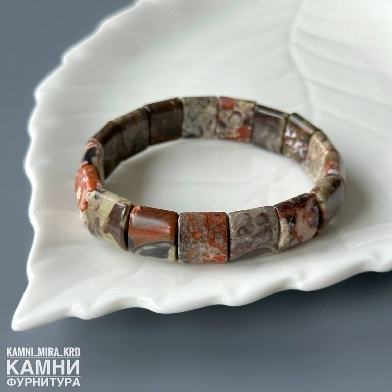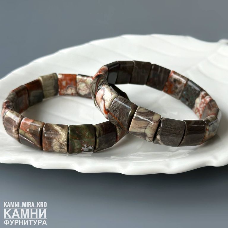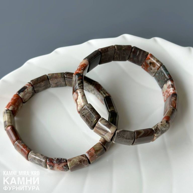Браслет яшма пейзажная прямоугольники 12,5х15 мм около 16 бусин (код 4162)