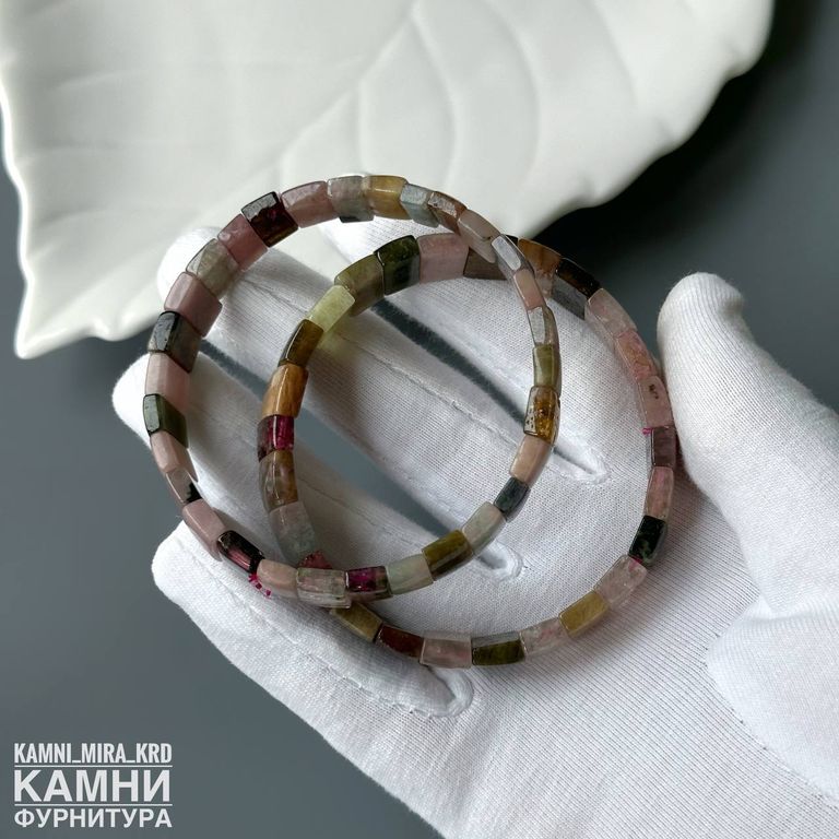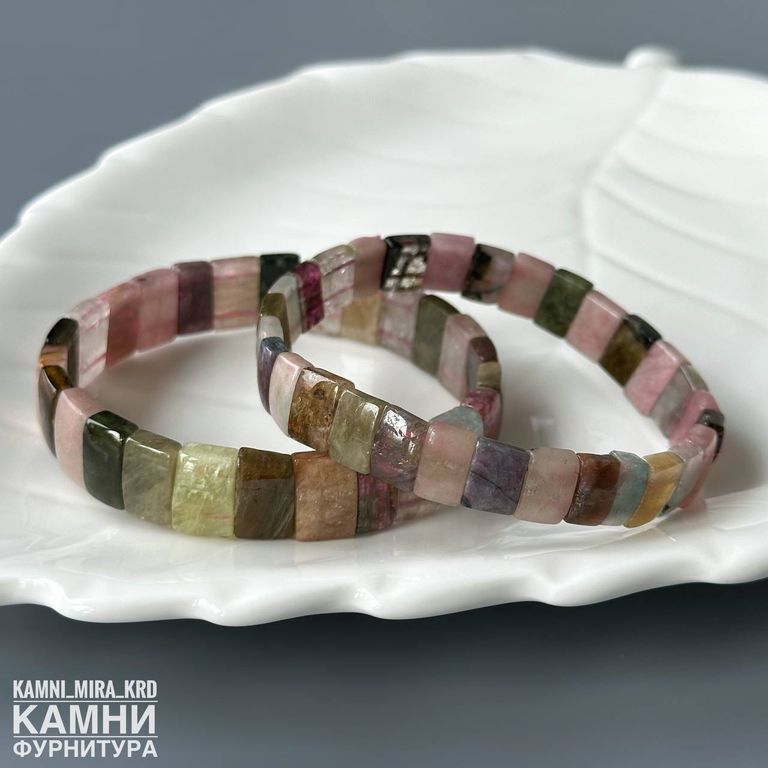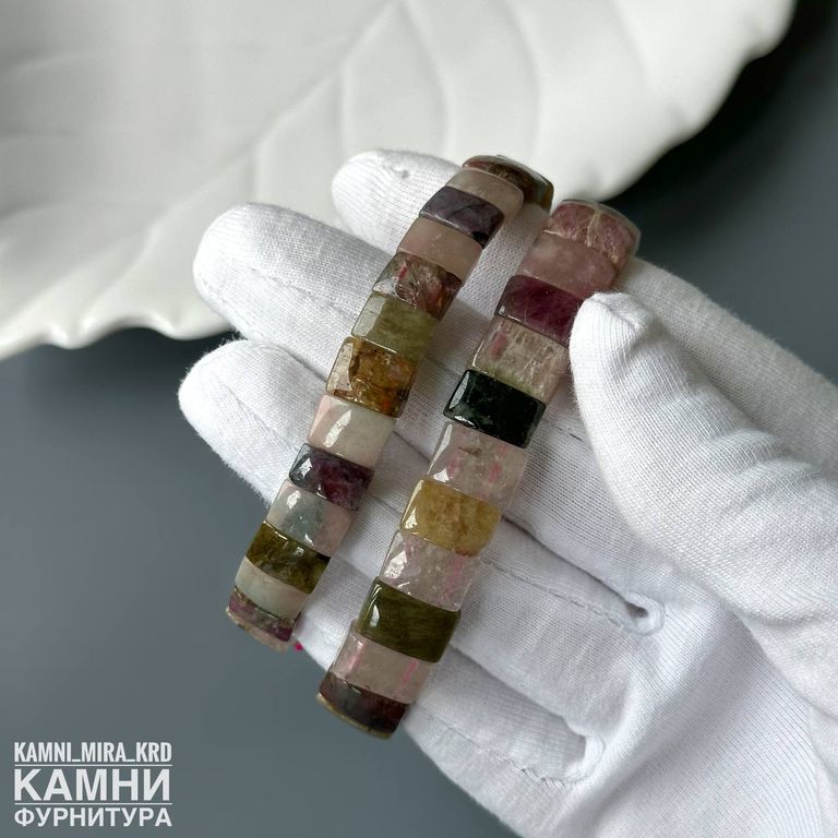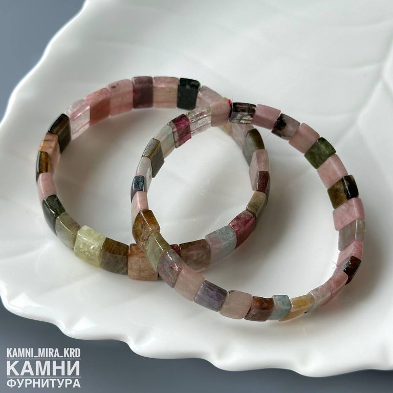 Браслет турмалин прямоугольники малые 10,2-10,4х6,7-8,4 мм около 28 бусин (код 4164)