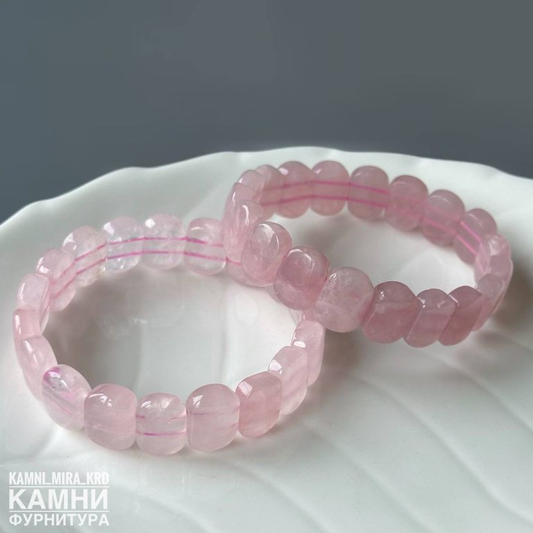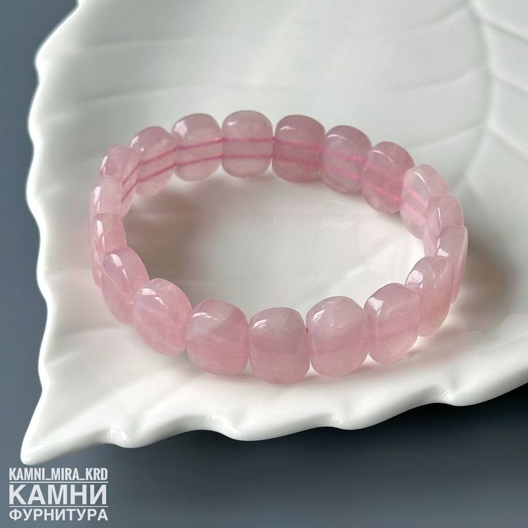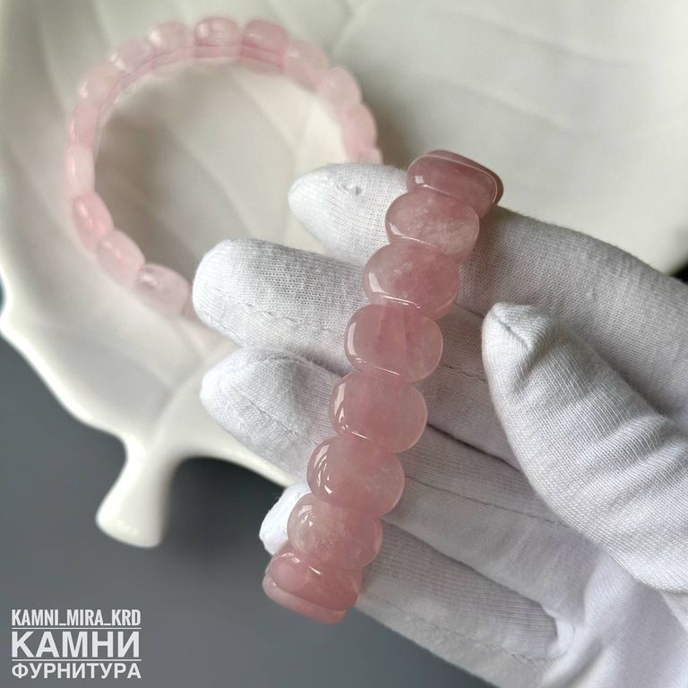 Браслет розовый кварц овалы 14,0-14,3х10,3-10,6 мм около 18 бусин (код 4161)
