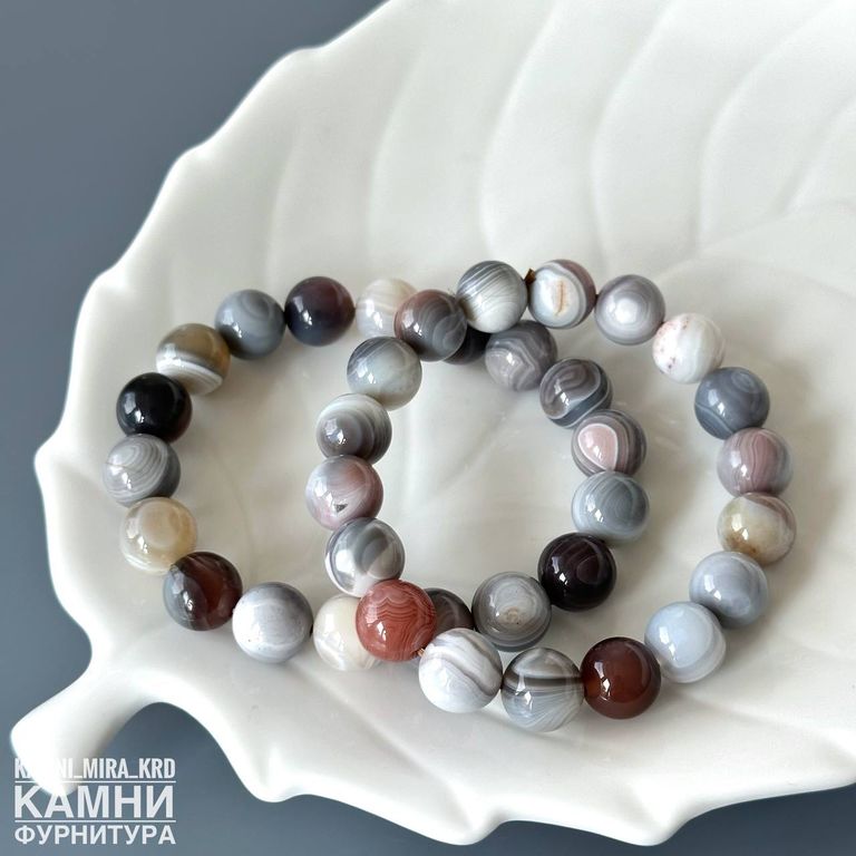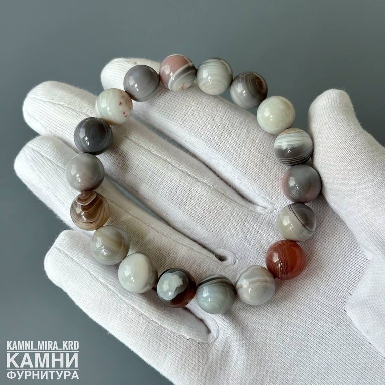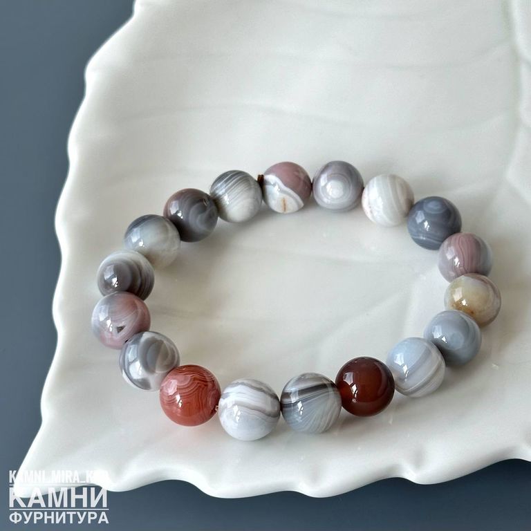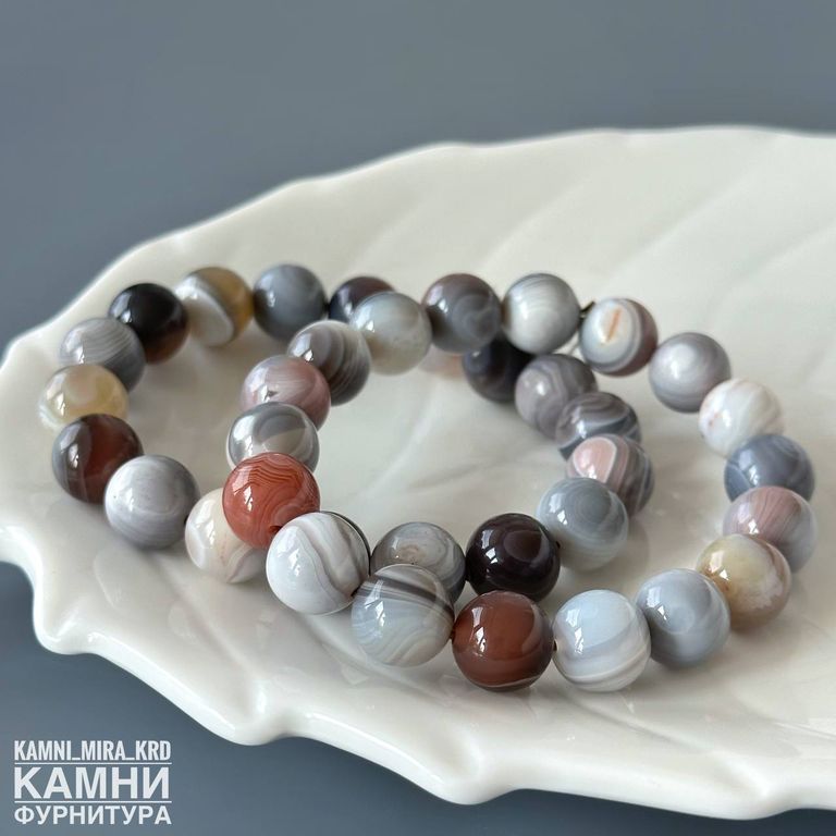 Браслет агат ботсвана шарик 10,8-11,1 мм около 18 бусин (код 4146)