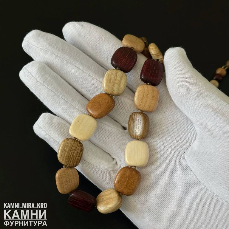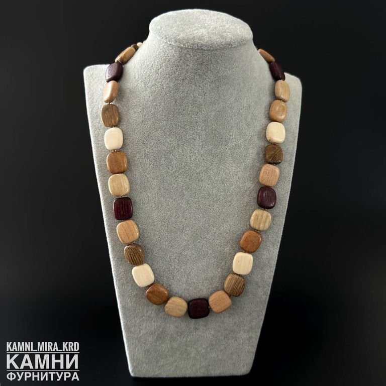 Бусы микс деревянных квадратных бусин 14-14,8 мм нить около 27 шт (код 4014)