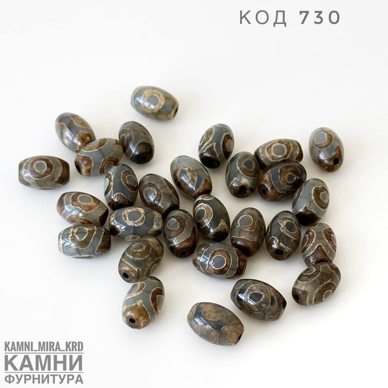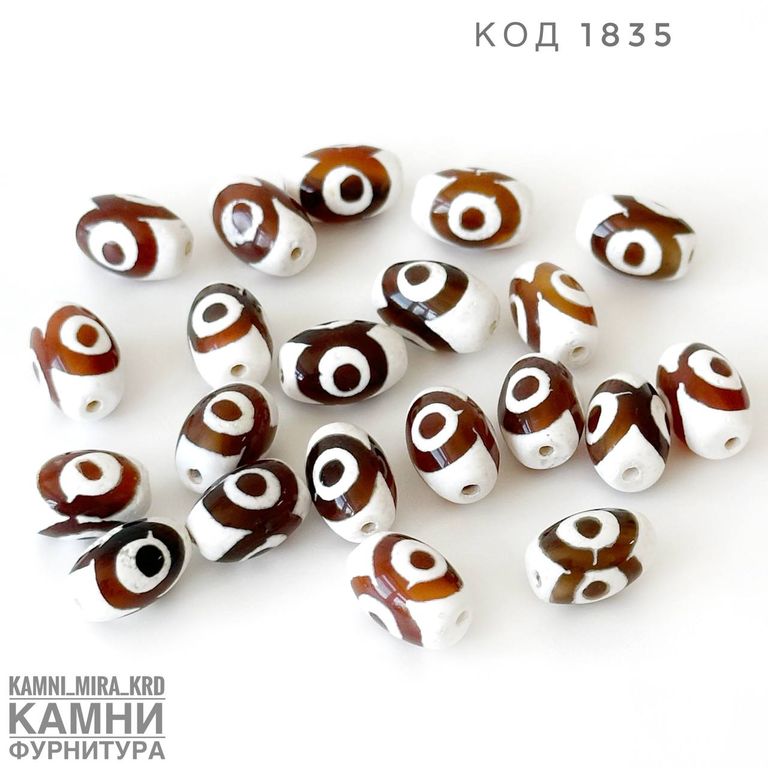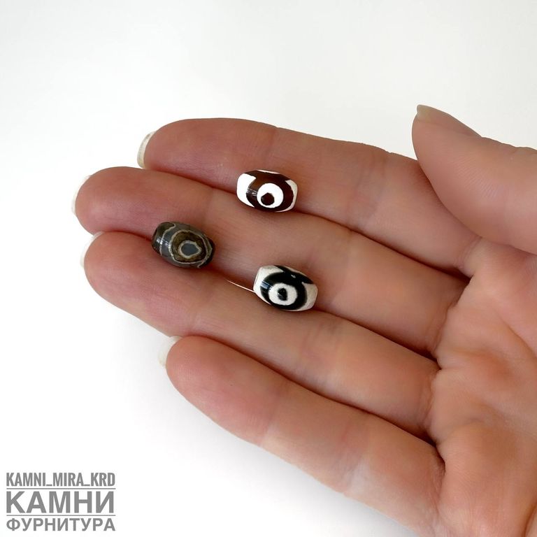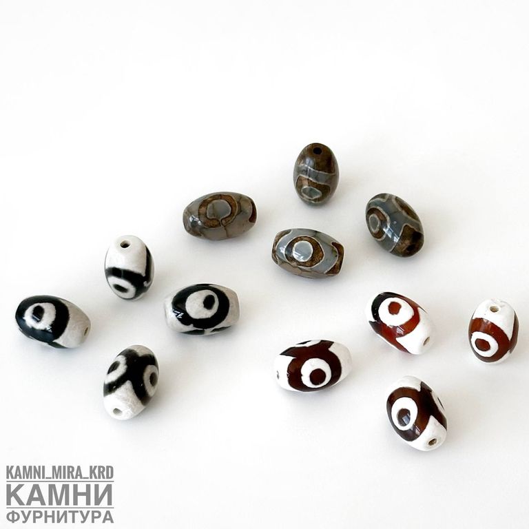Бусина дзи "Три глаза" малый бочонок 12х8 мм в ассортименте