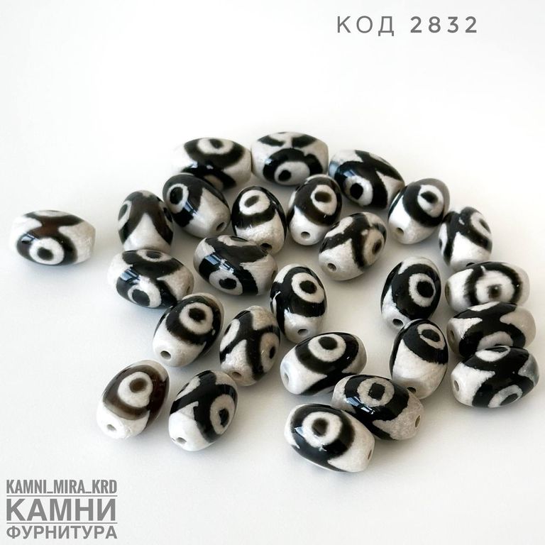 Бусина дзи "Три глаза" чёрно-белый на основе агата (код 2832)