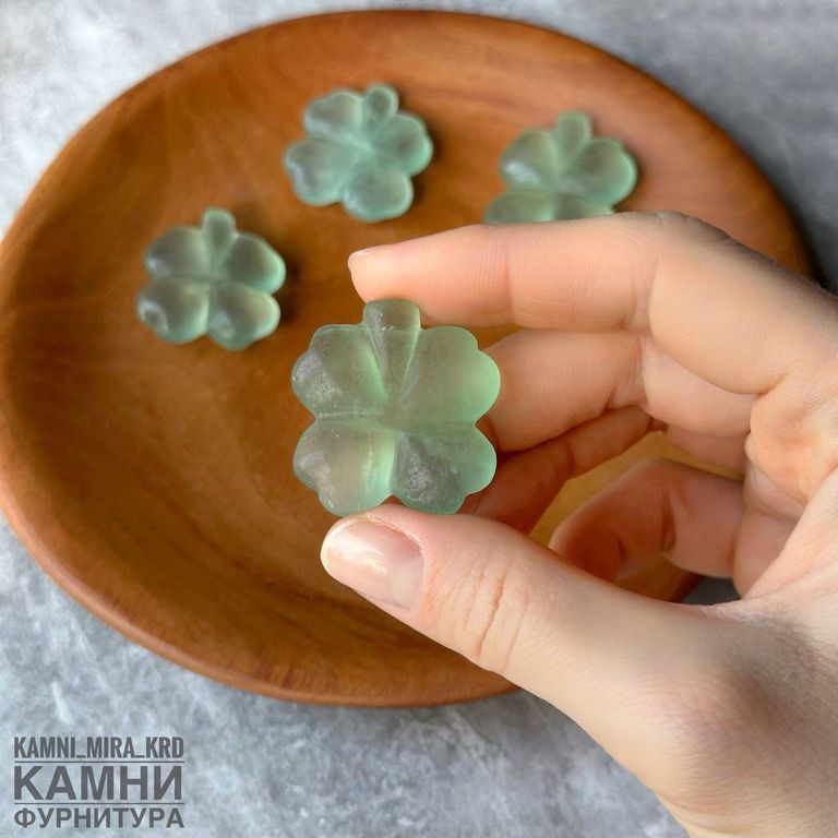 "Счастливый клевер" сувенир из флюорита 29-36х30х8мм (код 3825)