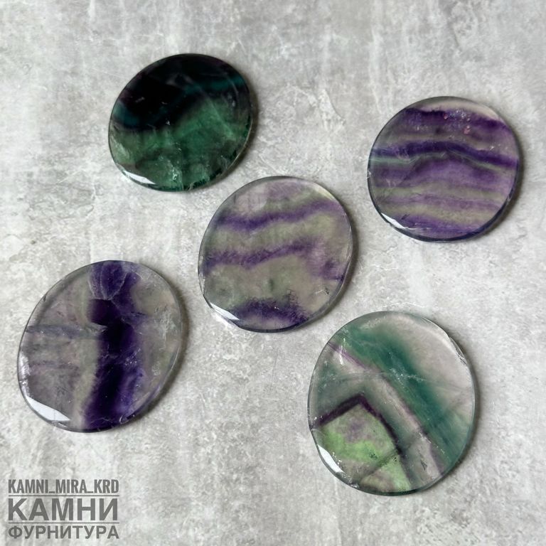 Флюорит многоцветный, плоские овалы 45х38х6 мм (код 647)