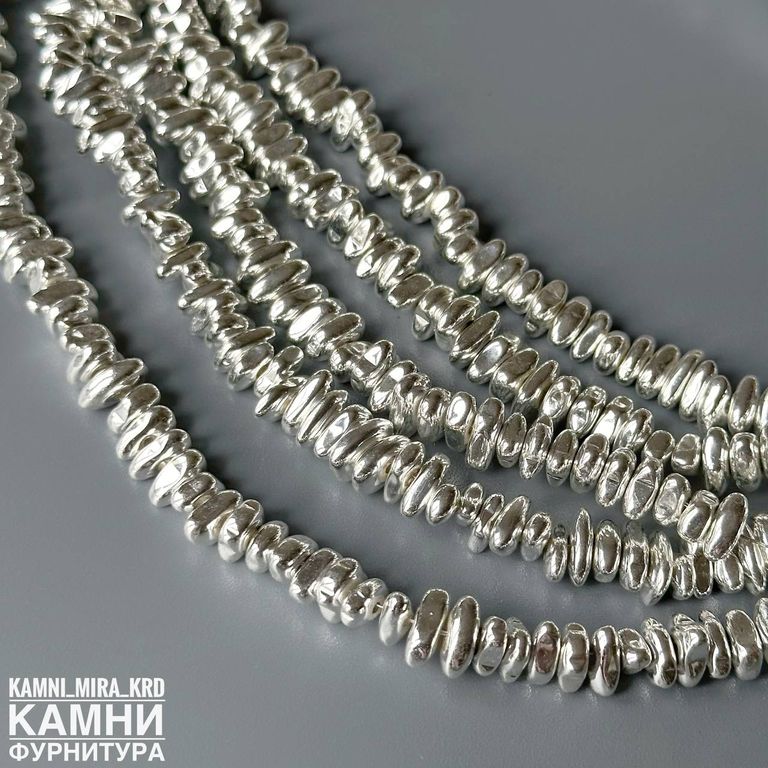 "Гематит" геметин камешки фри-форм 7-8х4-4,6 мм, цвет светлое серебро (код 3891)