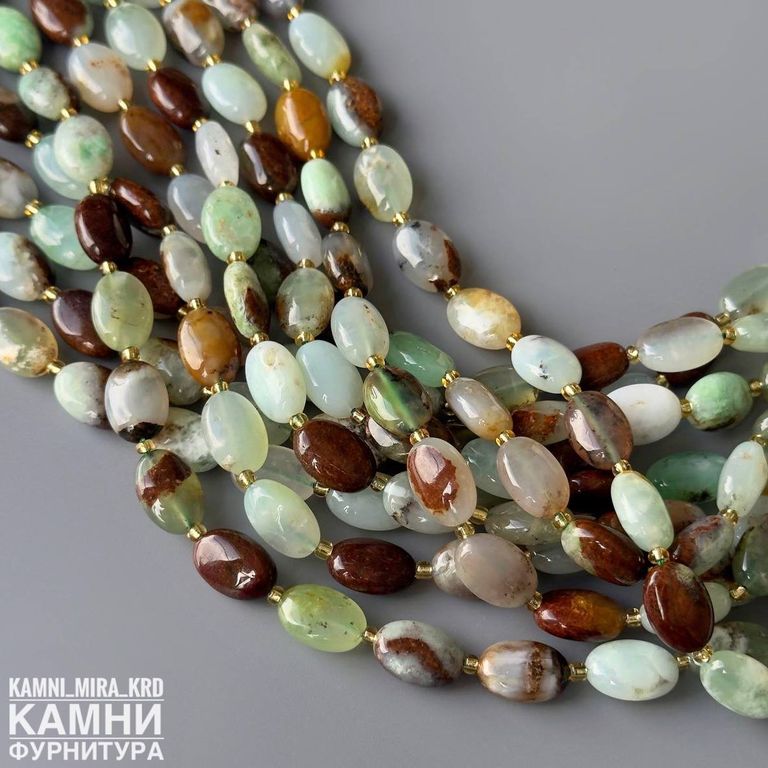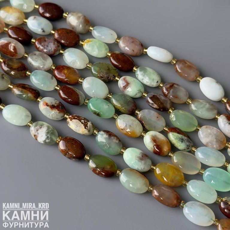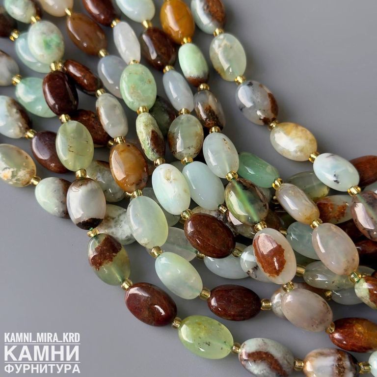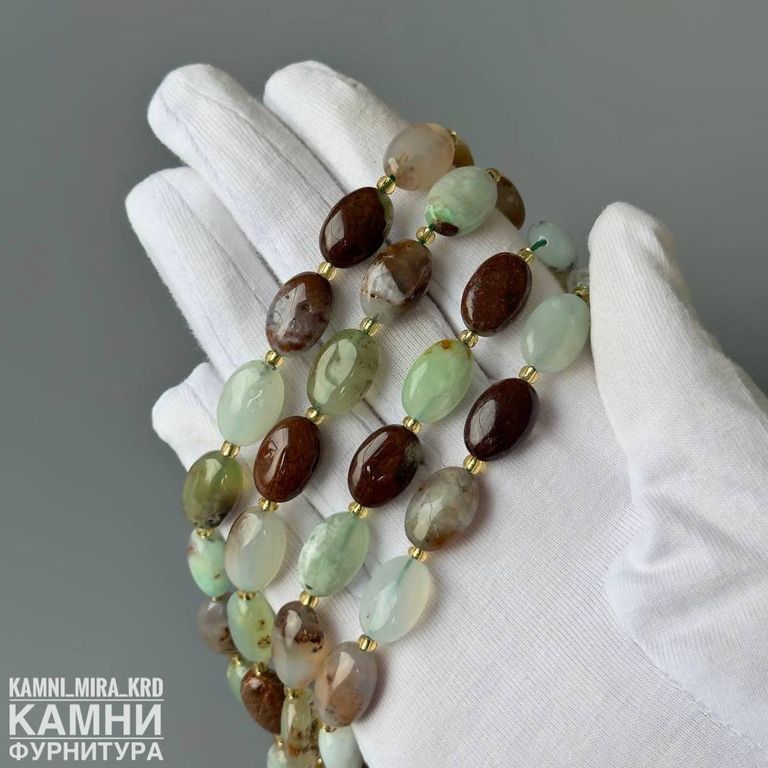 Хризопраз с породой овалы 10x14 мм (код 3969)