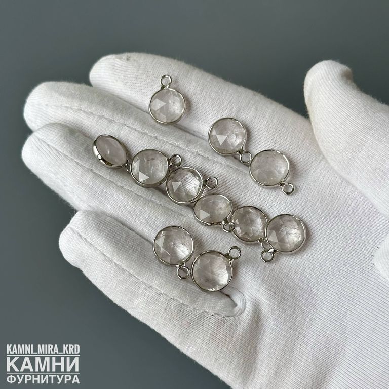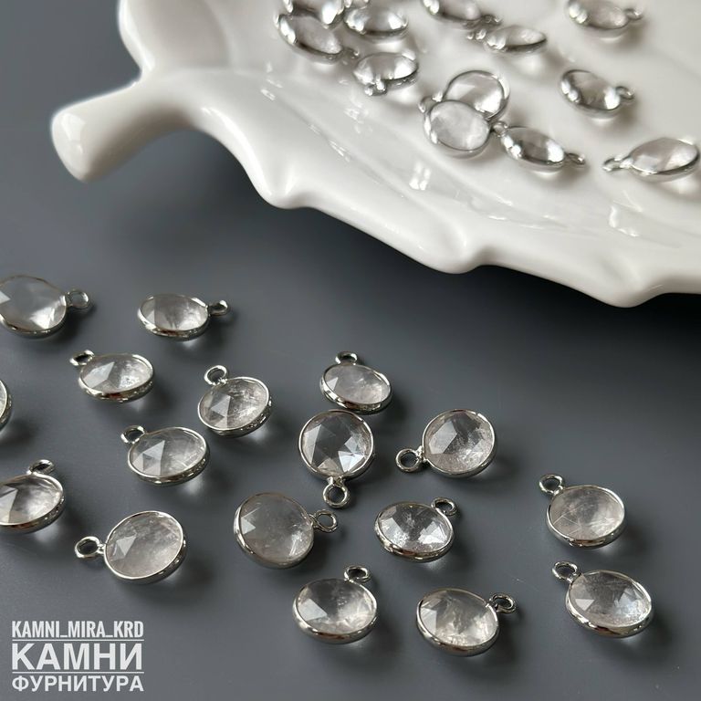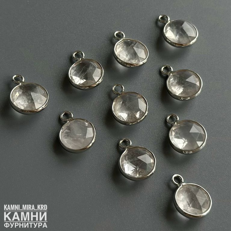 Подвеска круг в огранке с горным хрусталем 10,6 мм, цвет серебро (код 4274)