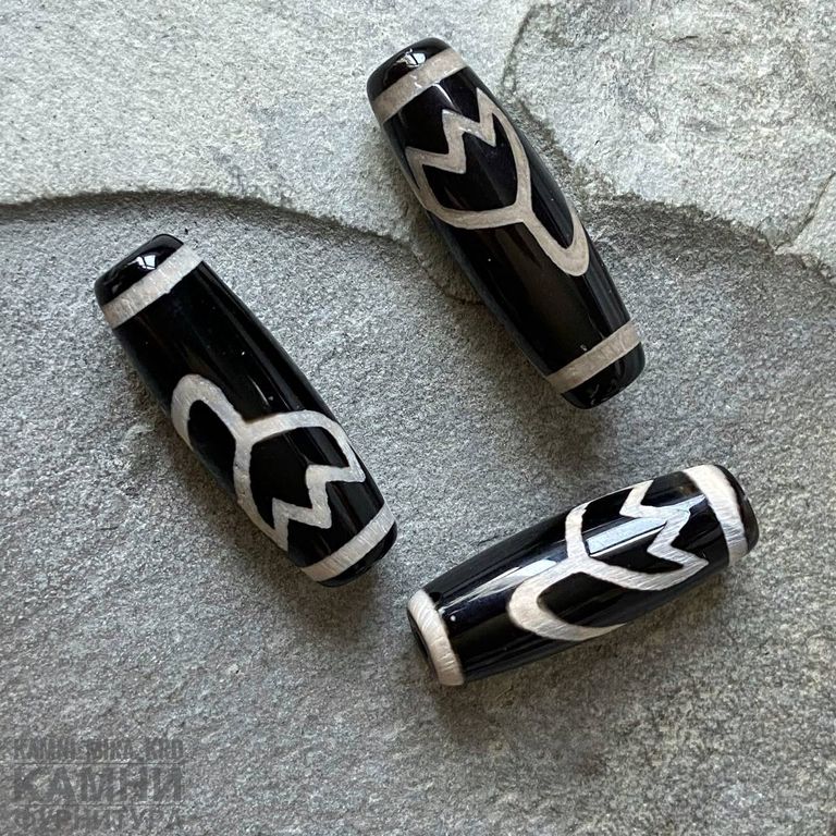Бусина дзи "Лотос" на основе агата средний биконус 29-30х10-11 мм, чёрно-белый (код 221)