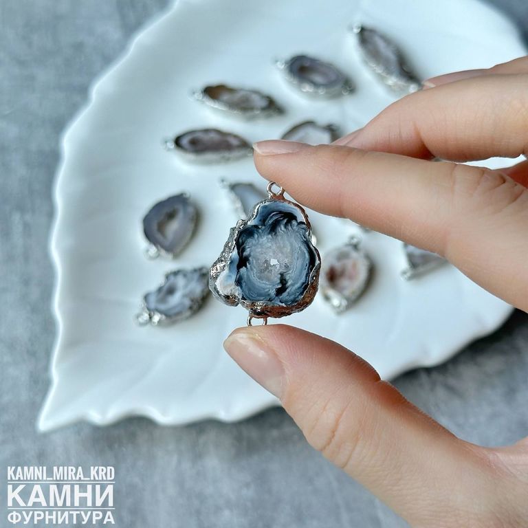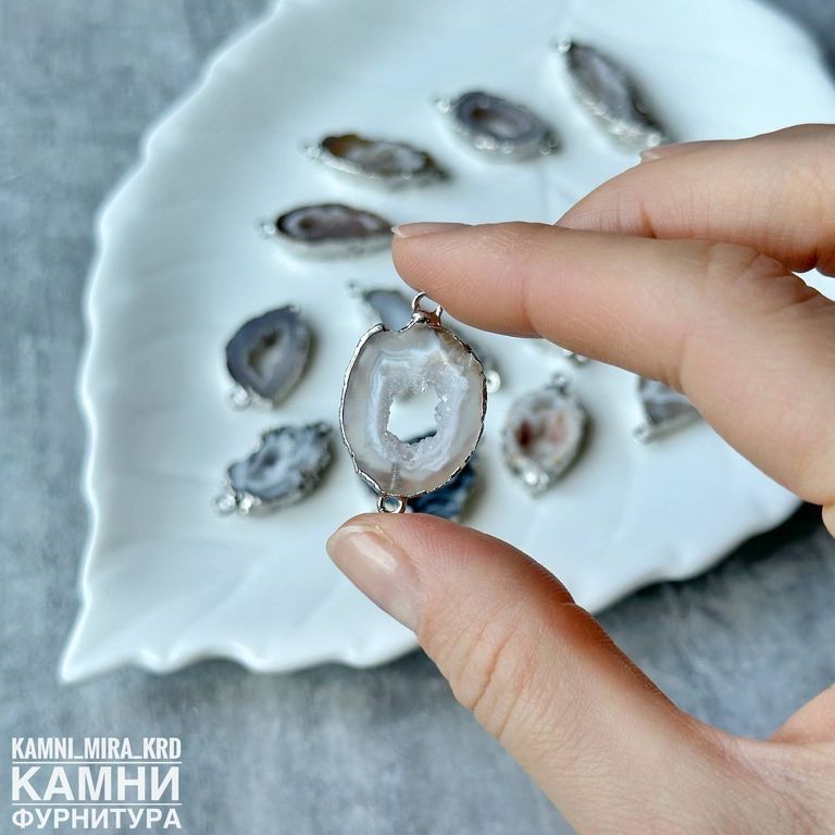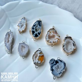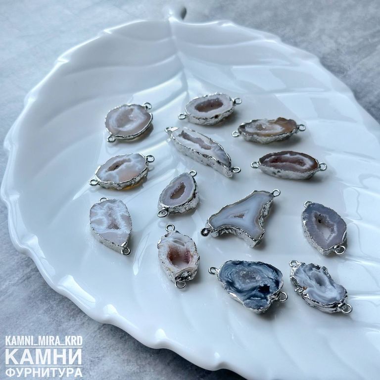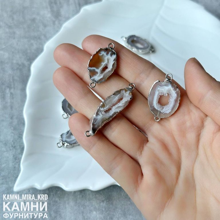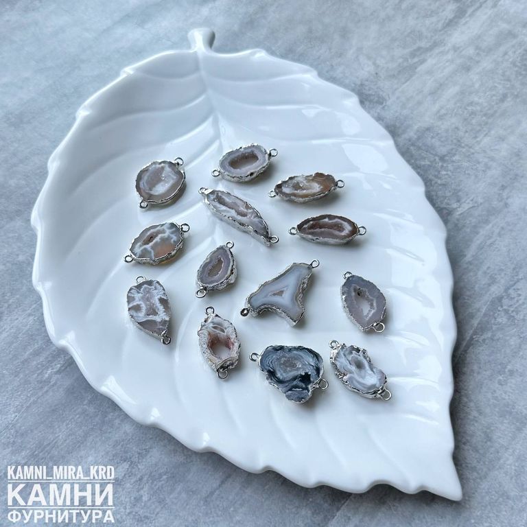 Коннектор "Срез агата" цвет металла серебро 22-40х12-20 мм (код 3811) - 500 р за штуку