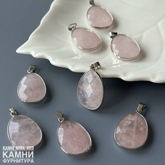 Кулон каплевидной формы в огранке розовый кварц (мстр. Мадагаскар) фри-форм 30-33х20-25 мм (код 4283)