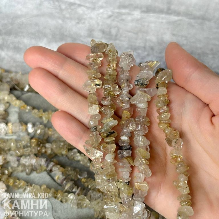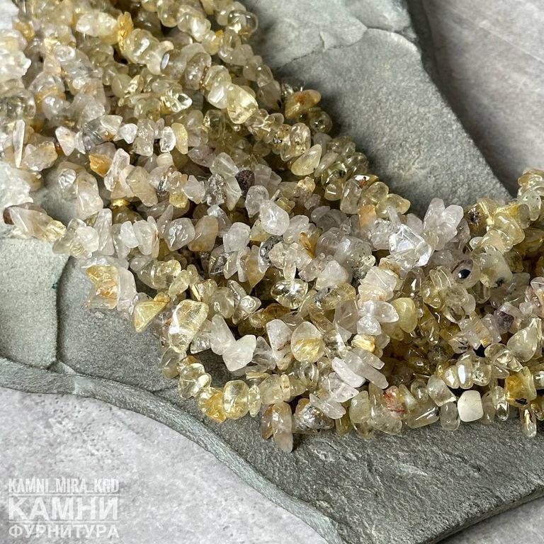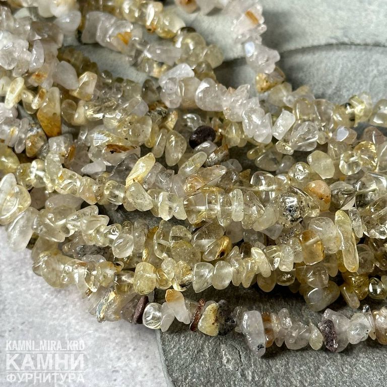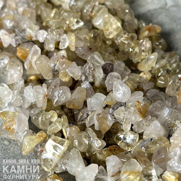 Рутиловый кварц "Волос Венеры" золотистый крошка галтовка 6-12 мм (код 1649)