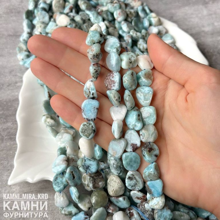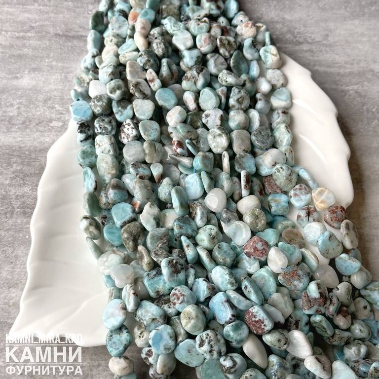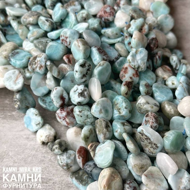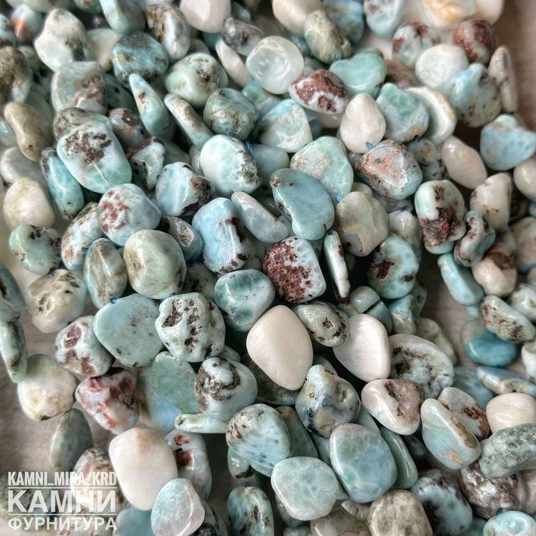 Ларимар с породой (мстр. Доминикана) крупная галтовка 12-14 мм (код 2429)