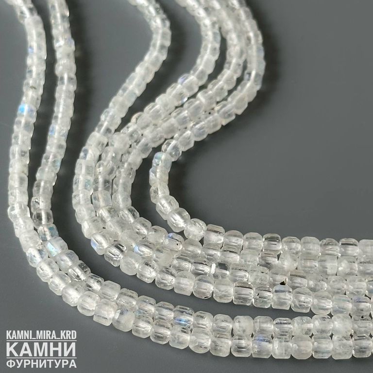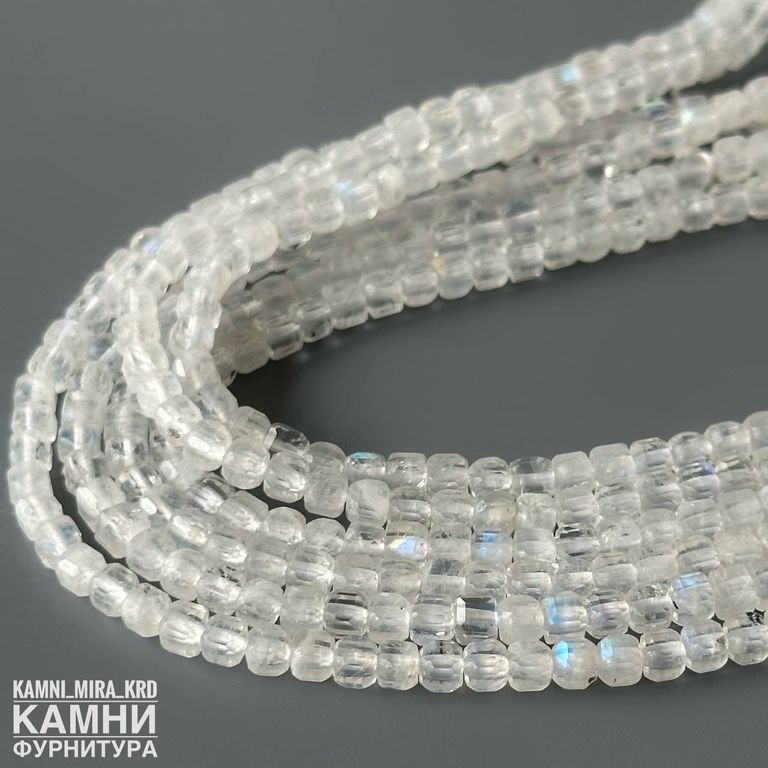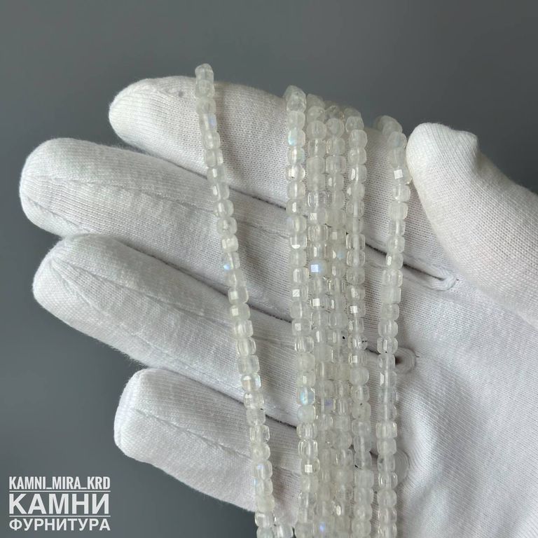 Лунный камень полупрозрачный с иризацией, кубик огранка 3-3,4 мм (код 4171)