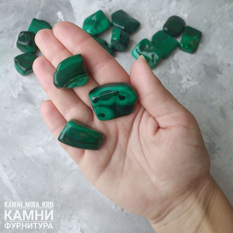 Малахит (мстр.Конго) угловатая галтовка средняя 15-23 мм (код 2848)