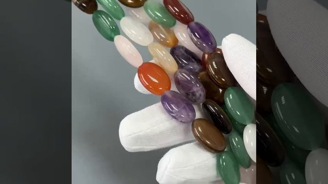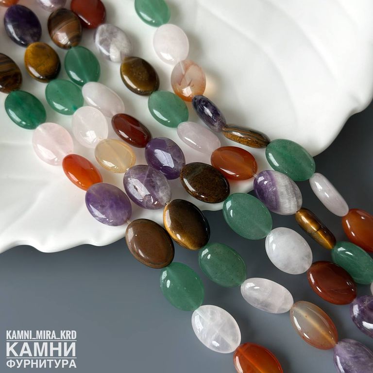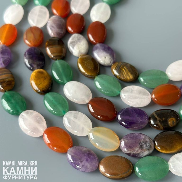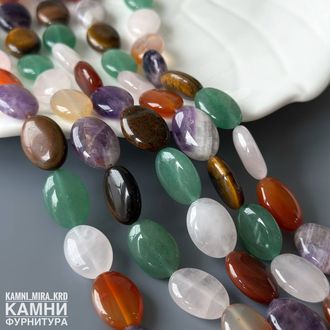 Микс камней овалы 18х12,7-13 мм (тигровый глаз, горный хрусталь, аметист, сердолик, розовый кварц, кварцит зелёный), цвет усилен (код 4096)