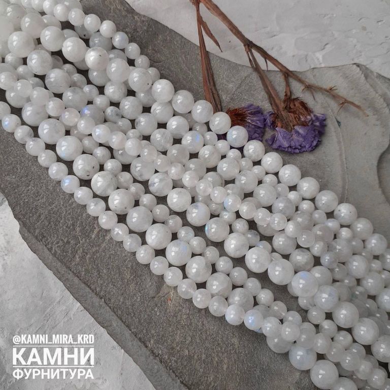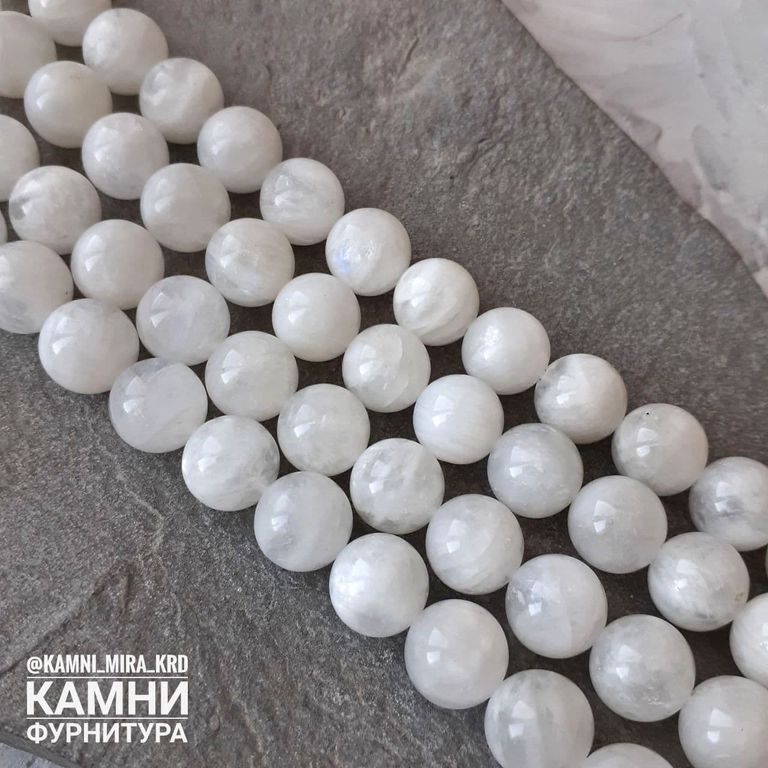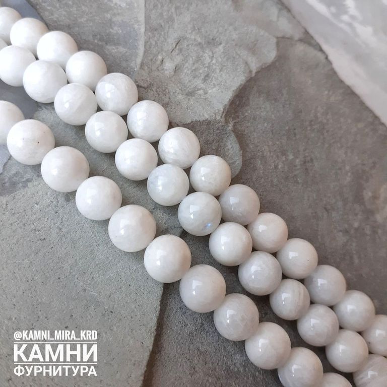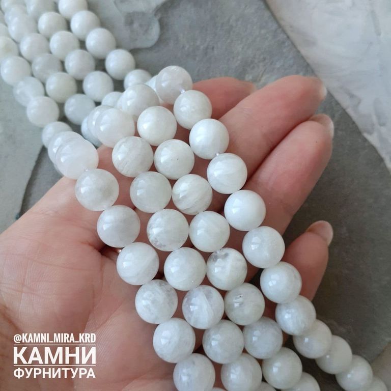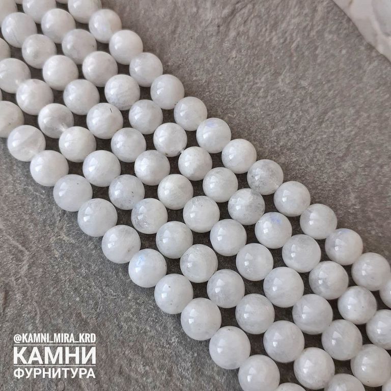 "Лунный камень" белый полевой шпат с редкой иризацией, шары 6,1-6,7/8-8,4/10,3-10,5 мм
