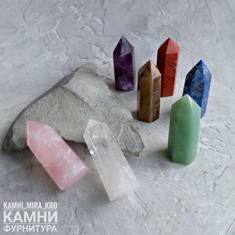 горный хрусталь, аметист, лазурит, кварцит, тигровый глаз, розовый кварц, красная яшма
