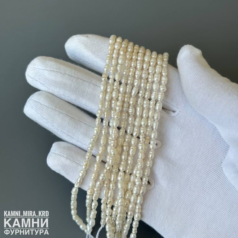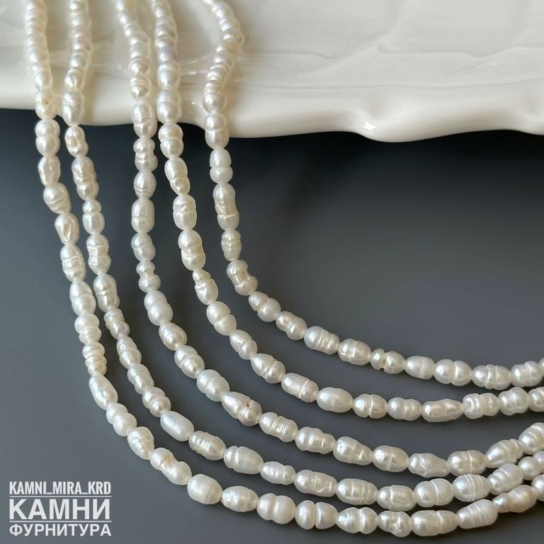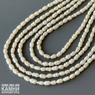 Жемчуг речной белый мелкий рис барочный фри-форм 3,5-4,7х3-3,5 мм с щербинками (код 1583)
