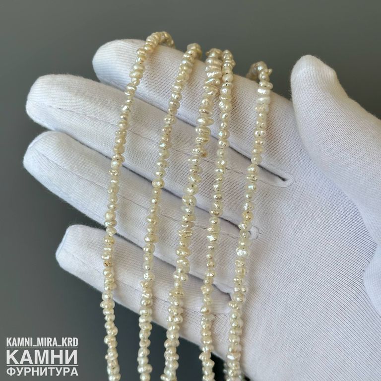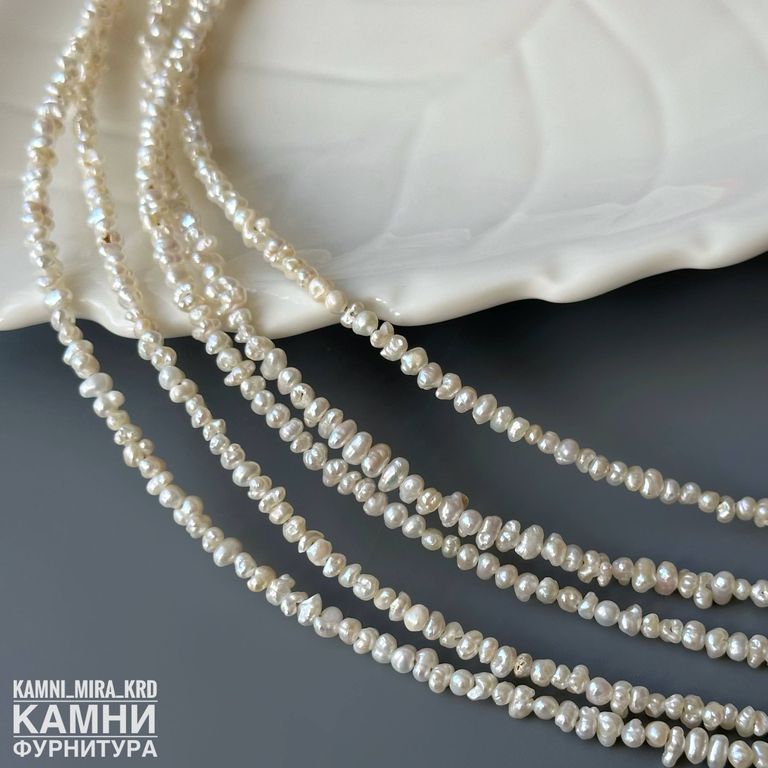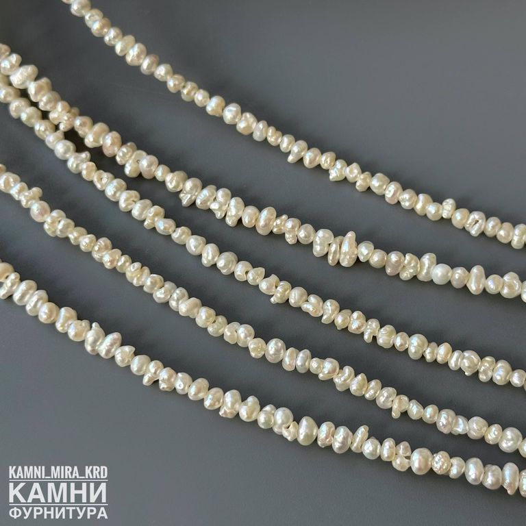 Жемчуг речной белый мелкий барочный фри-форм 2,4-2,8х3-4,8 мм с щербинками, раковинками (код 1081)