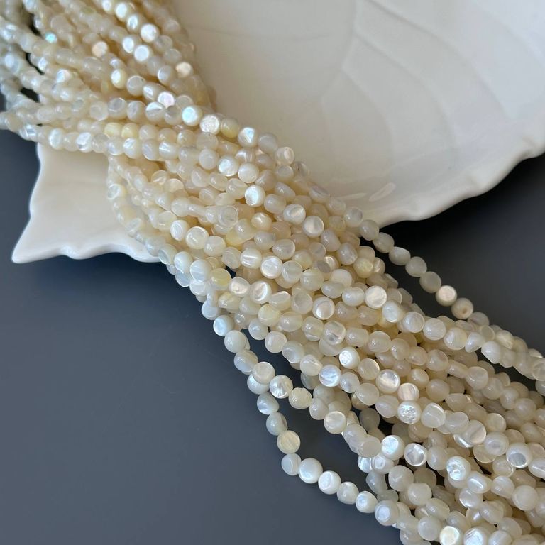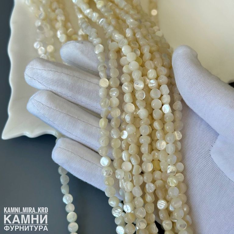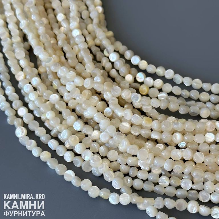 Перламутр бело-бежевый с ярким сиянием фри-форм малые монетки плоские 5,6-5,9 мм (код 4038)