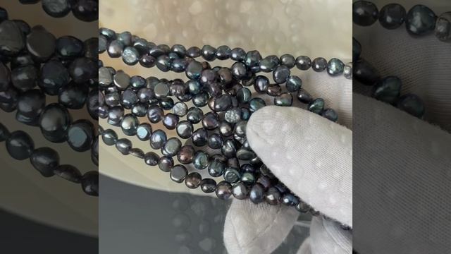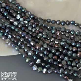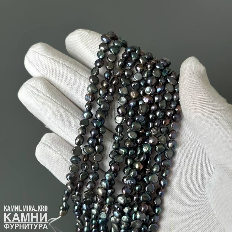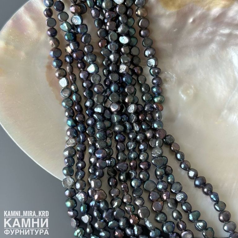 Жемчуг речной чёрно-серый с радужным переливом мелкий округлый фри-форм плоский 4-5 мм (код 4340)