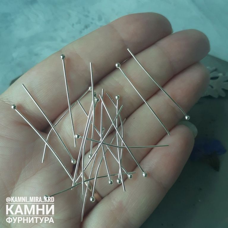 Пины простые с шариком, цвет светлое серебро