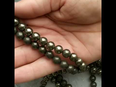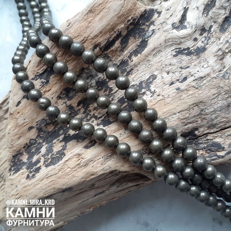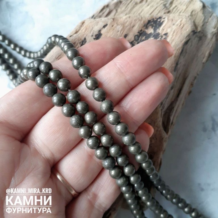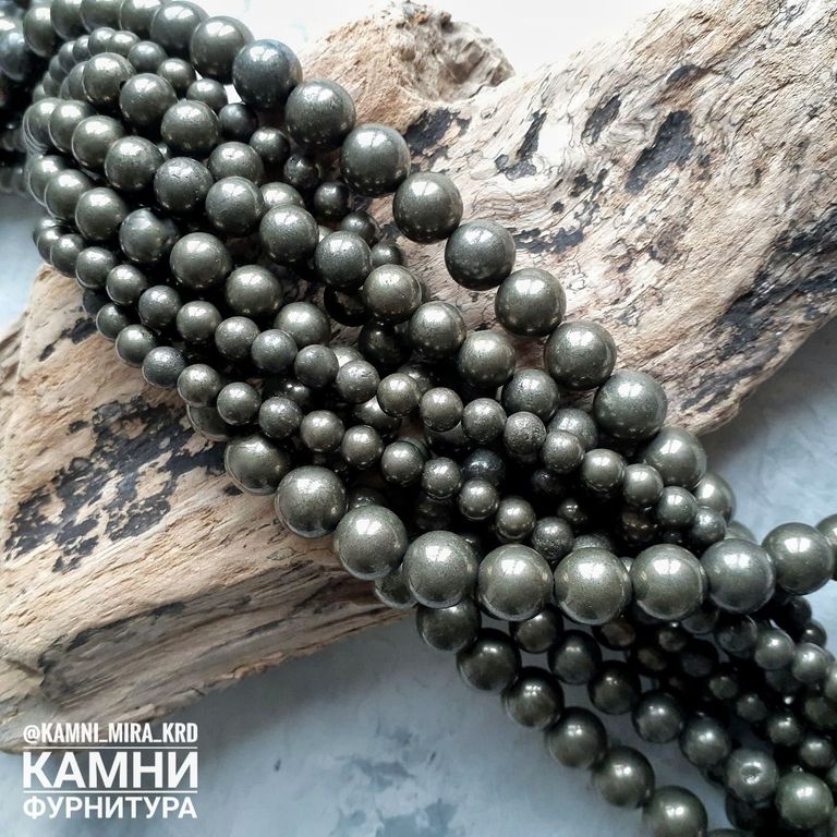 Пирит с породой шары 6,1-6,3/8,5-8,6/10,2-10,3 мм. Бусины стабилизированы укрепляющим веществом