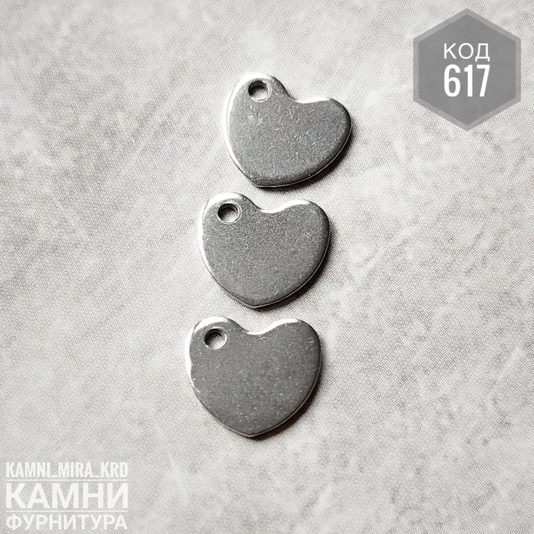 Подвеска "Сердечко тонкое" дырочка сбоку 9х10 мм нерж.сталь (код 617) - 85 р за набор 10 штук