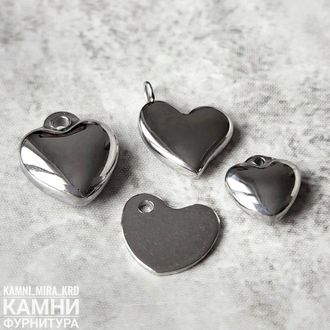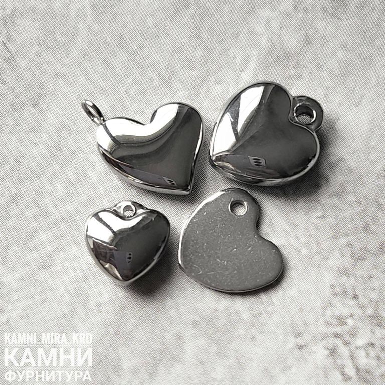 Подвеска "Сердечко" колечко сбоку ЛЮКС 12х10 мм нерж.сталь (код 1005) - закончились