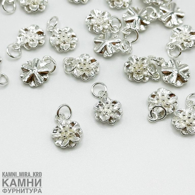 Подвеска "Светлый цветок" ЛЮКС 10 мм, родиевое покрытие, цвет светлое серебро (код 3642)