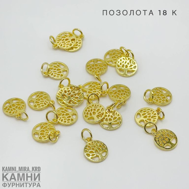 Подвеска монетка с деревом ЛЮКС 10 мм, позолота 18К (код 3620)