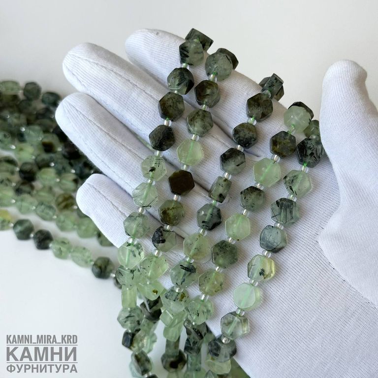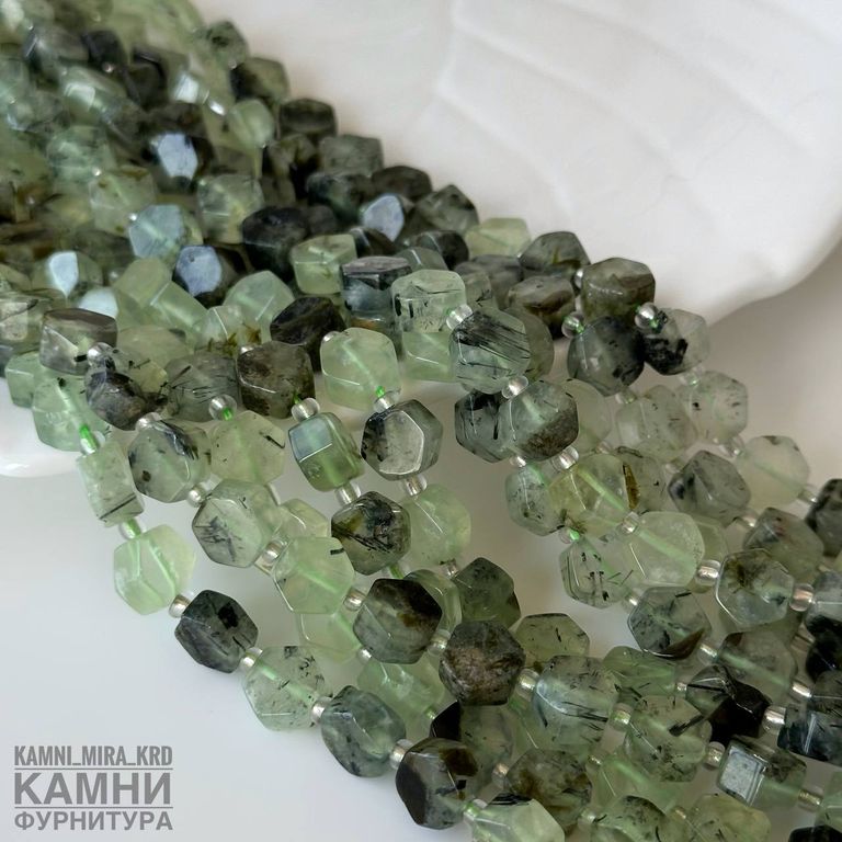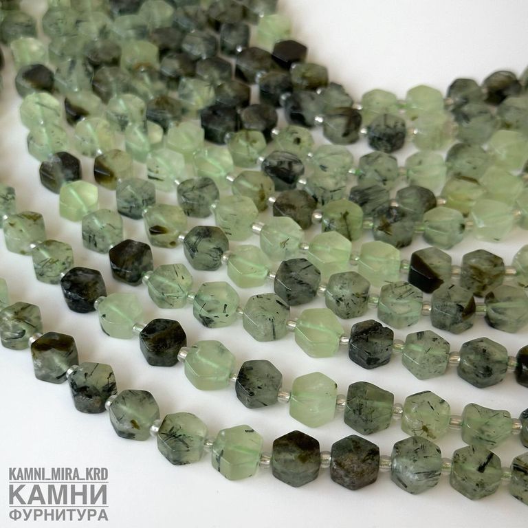 Пренит шестигранники 8,2x9,1 мм через стеклянный бисер (код 4316)