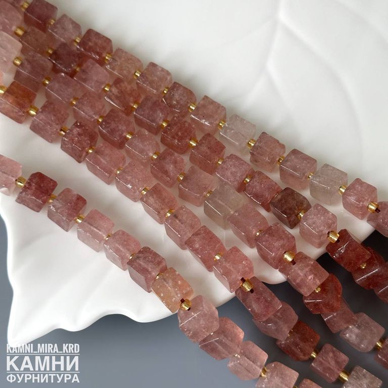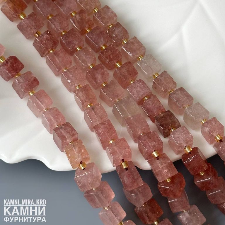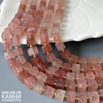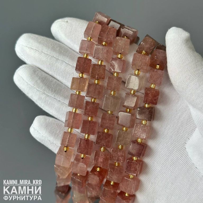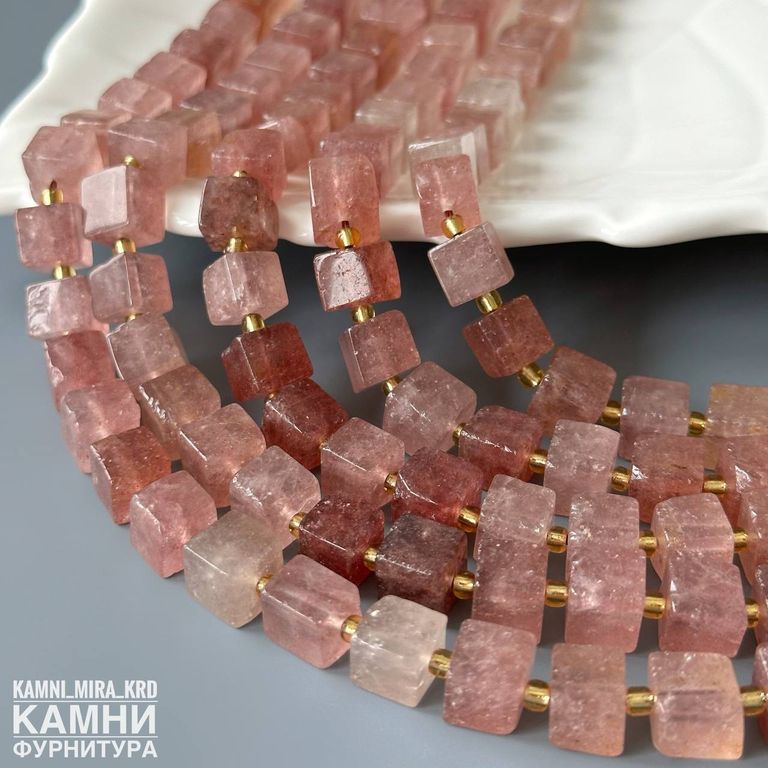 "Клубничный кварц" кварц с включениями гётита и слюдки рубиновой кубик 7x7-7,5x8,1 мм (код 4193)