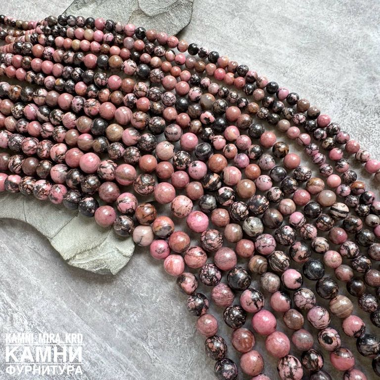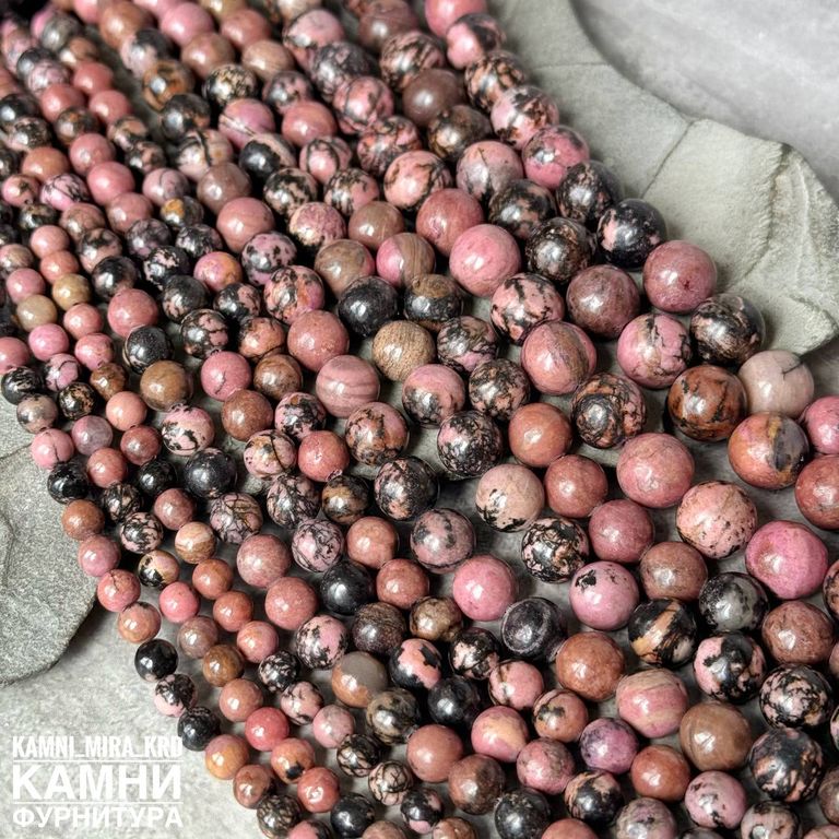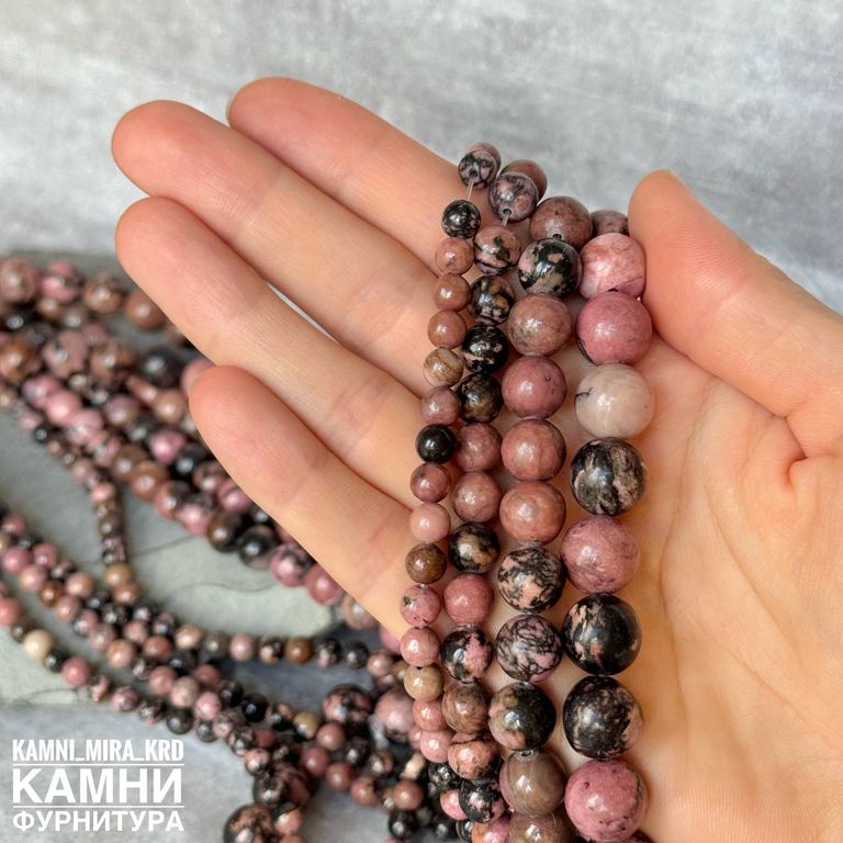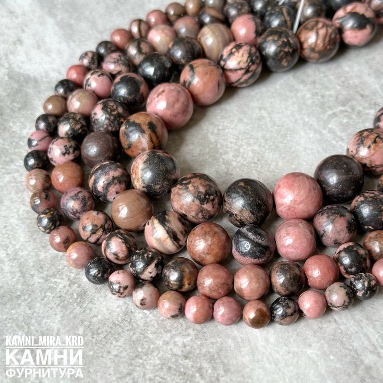 Родонит с породой, шары 4,5-5/6-6,3/7,9-8,3/9,9-10,2/12-12,3 мм