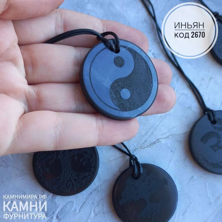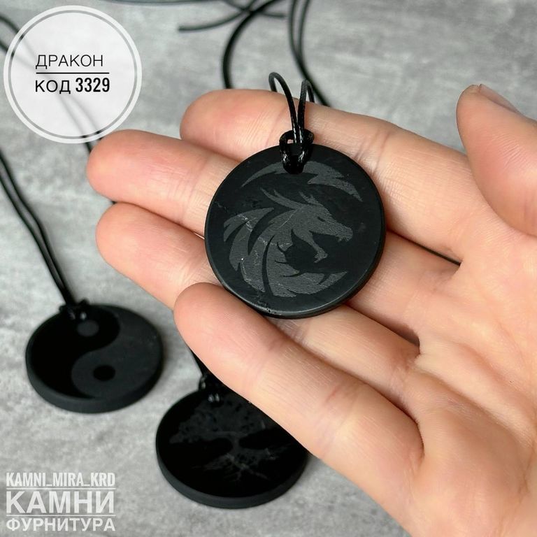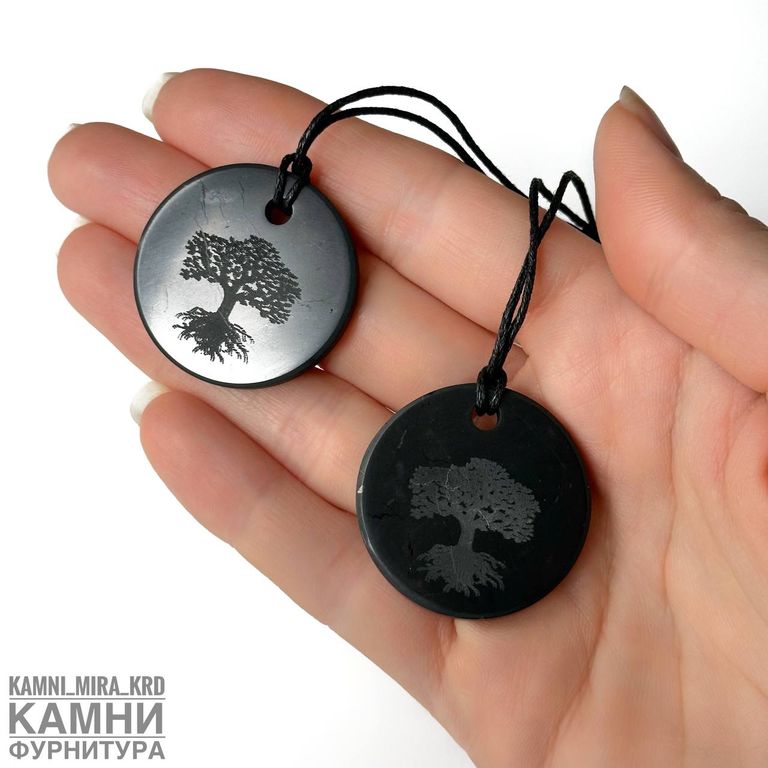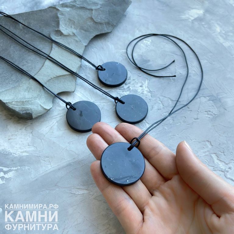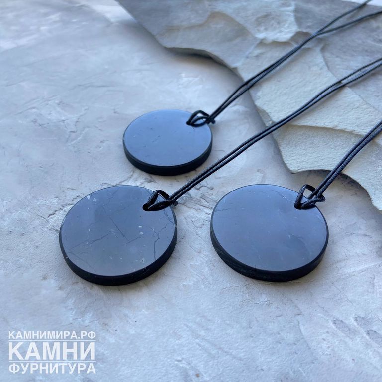 Кулон из натурального шунгита (Карелия) круг 35 мм